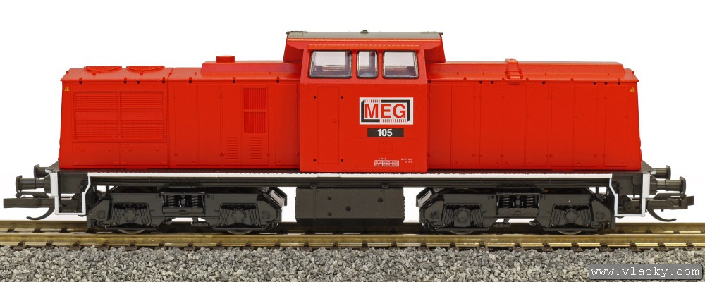 Kód   501351  [Lokomotivy] → [Motorové] → [V 100] → 501351: dieselová lokomotiva vínově červená, bíle olemovaný rám