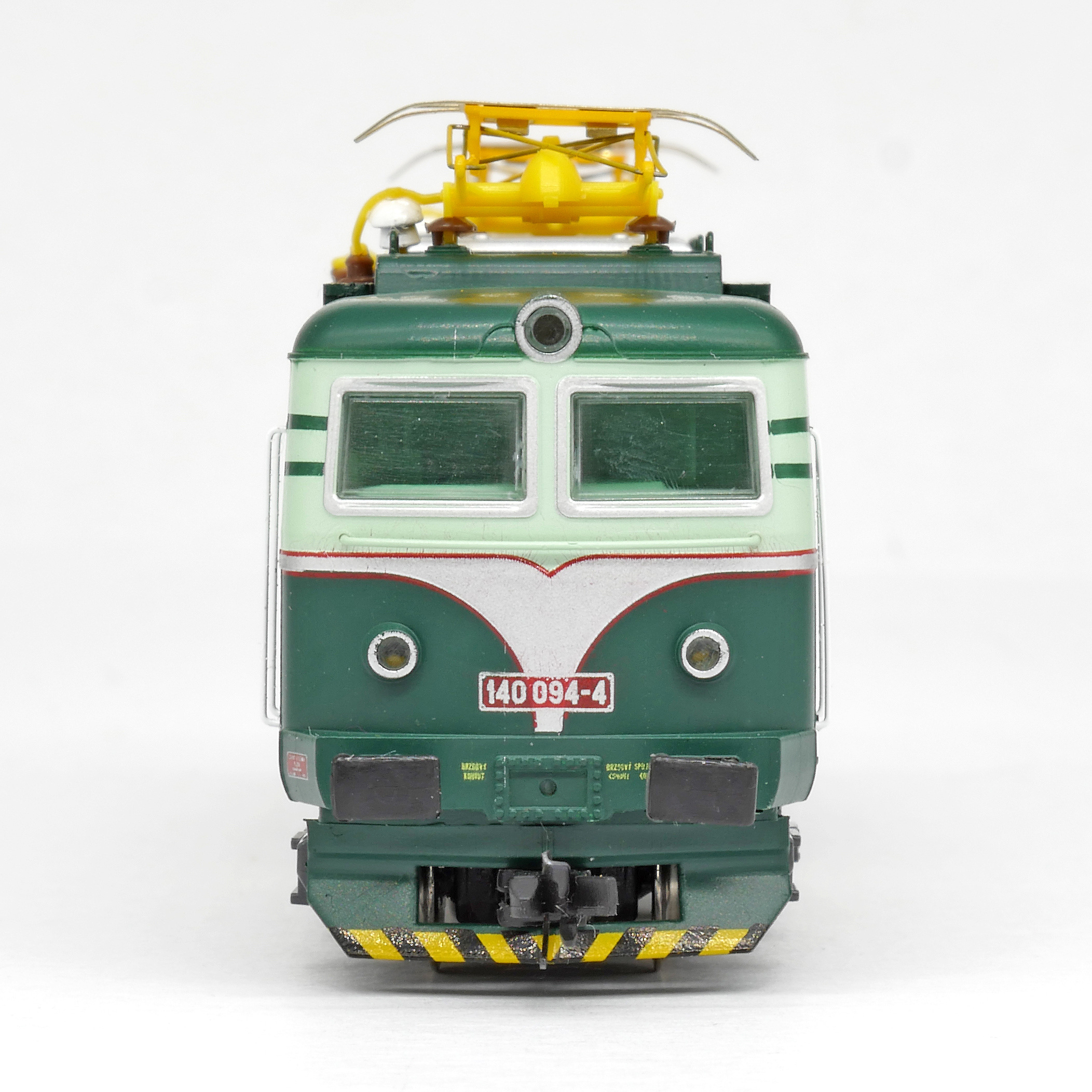 Kód   ZSR-140-065  [Lokomotivy] → [Elektrické] → [E499.0] → ZSR-140-065: elektrická lokomotiva v odstínech zelené, šedá střecha, žlutý výstražný pruh