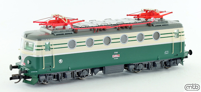 Kód   CD-140-094  [Lokomotivy] → [Elektrické] → [E499.0] → CD-140-094: elektrická lokomotiva v nátěru tmavě zelená-světle zelená, žluté pantografy