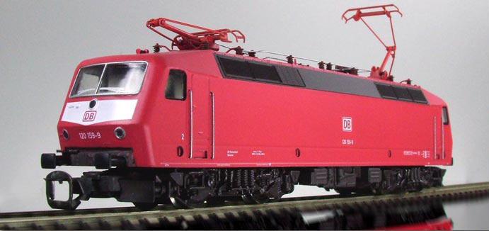 Kód   1011601  [Lokomotivy] → [Elektrické] → [BR 120] → 1011601: červená s bílým čelem, hnědé podvozky