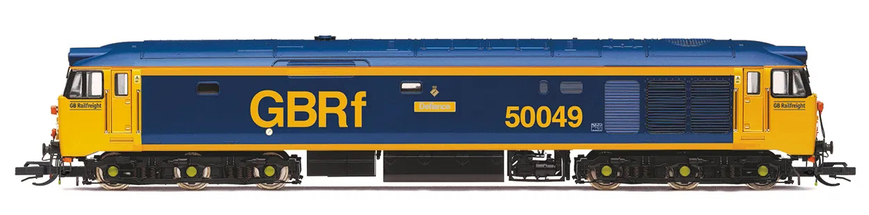 dieselová lokomotiva modrá-žlutá, černý pojezd „Defiance“
