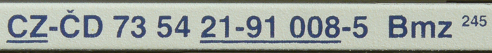 Číslo   73 54 21-91 008-5  Kontrolní číslice je v pořádku  Tovární číslo