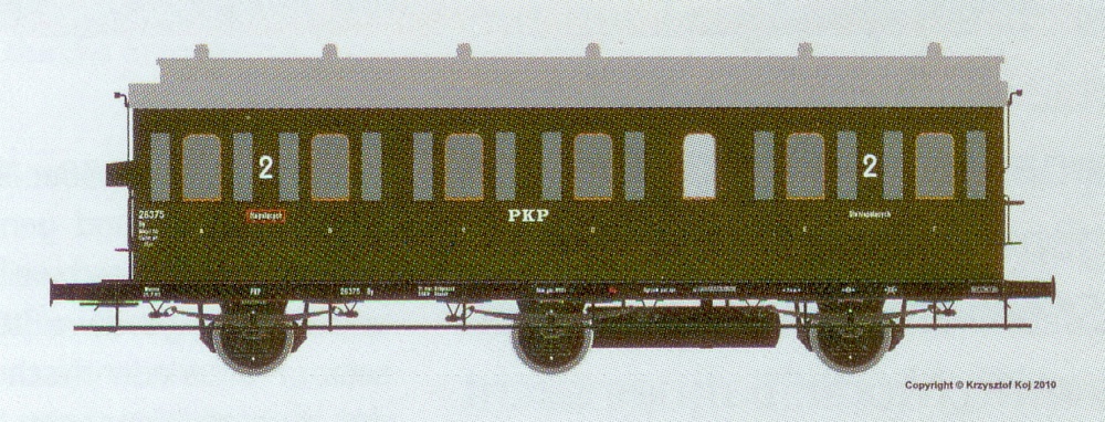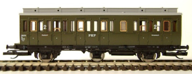 oddílový osobní vůz tmavězelený s šedou střechou 2. tř.