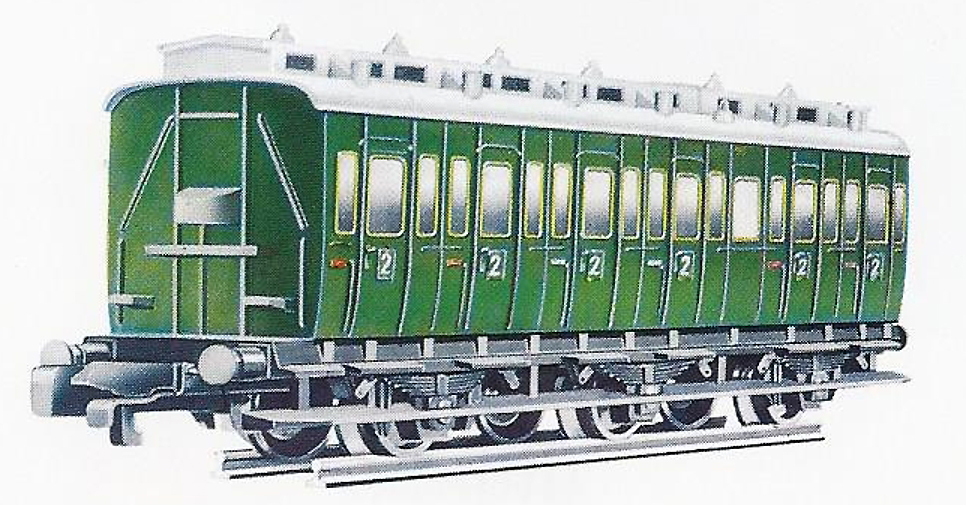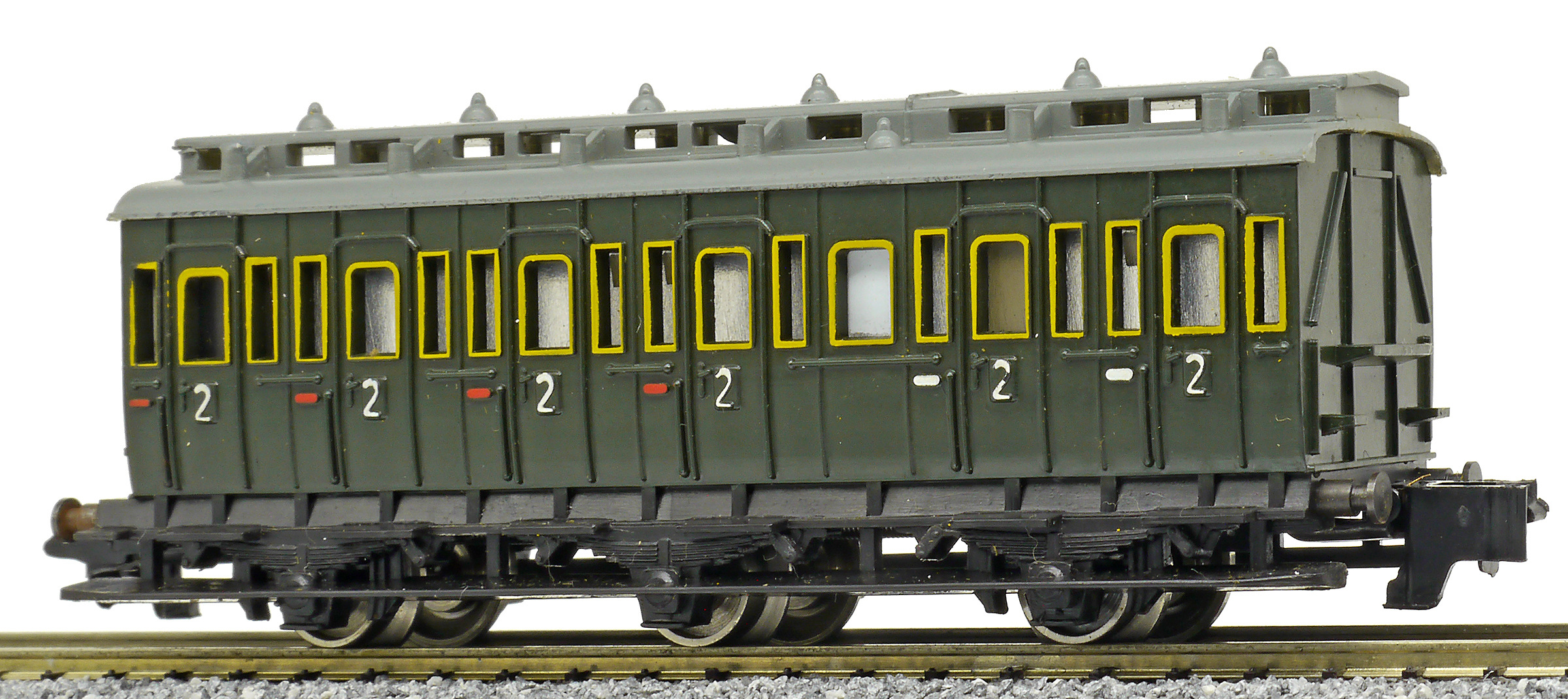 | oddílový osobní vůz zelený s šedou střechou 2. tř. |