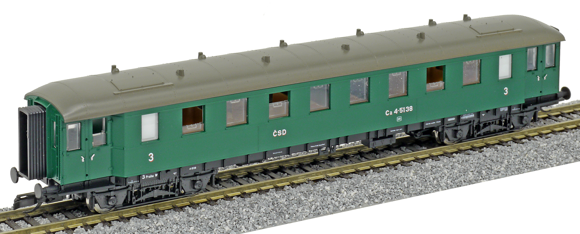 | osobní vůz zelený s šedou střechou 3. tř. |