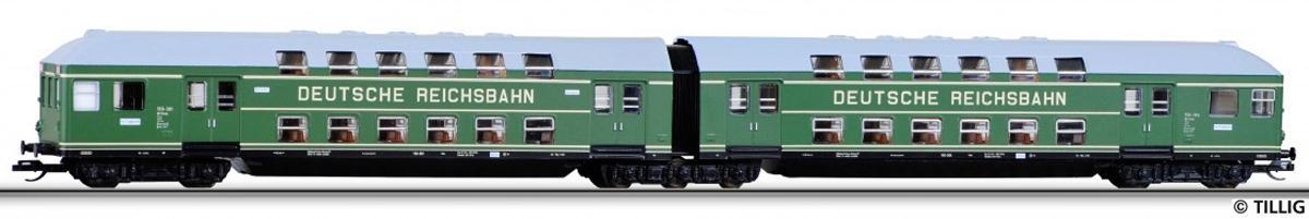 Kód   3731  [Osobní vozy] → [Patrové] → [DB 13] → 3731: dvoudílná jednotka zelená s šedou střechou 2. tř.