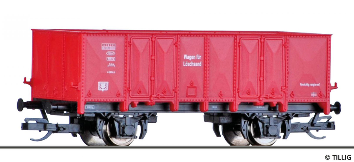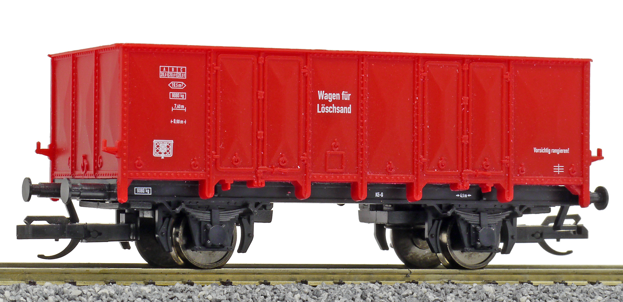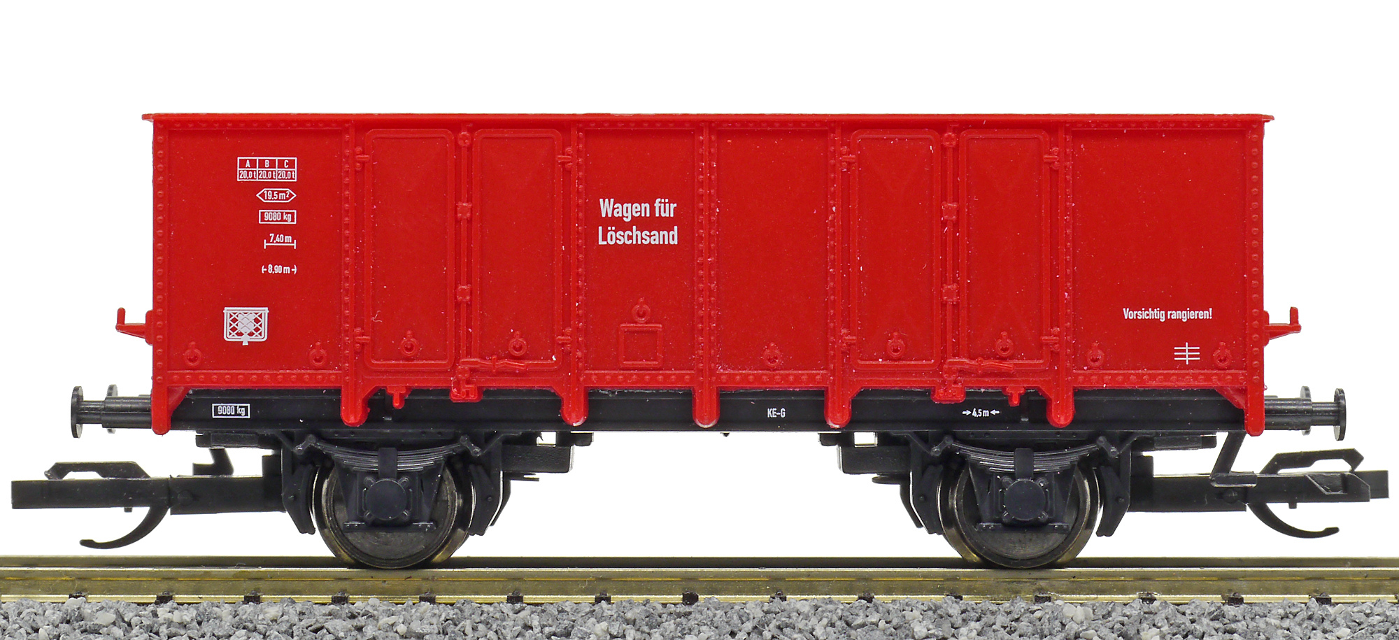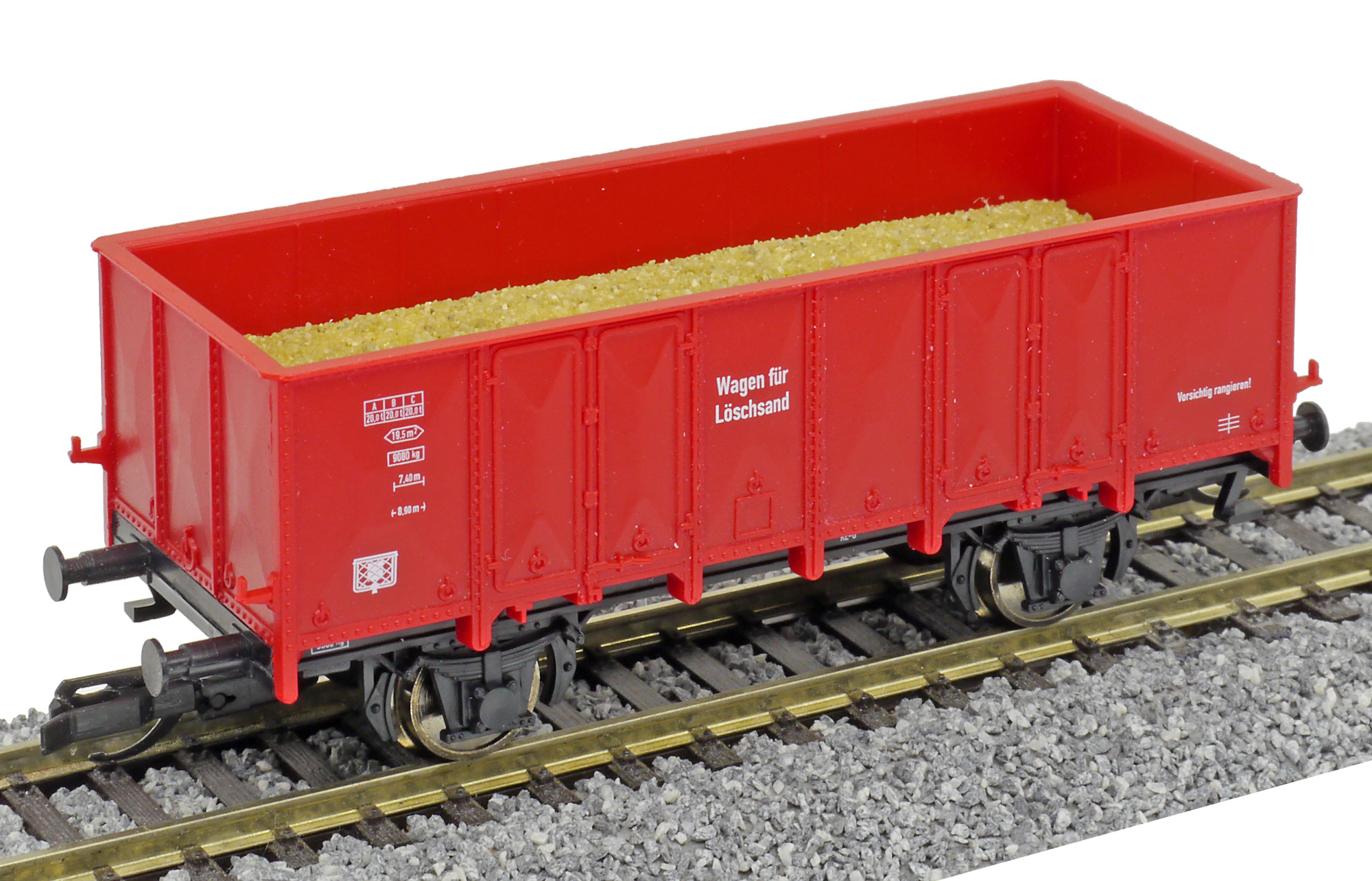 | otevřený vůz červený s nákladem písku do požárního vlaku |