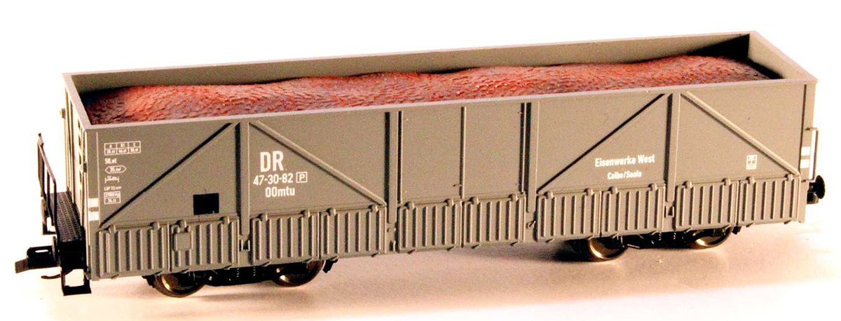 | otevřený nákladní vůz šedý s nákladem železné rudy |