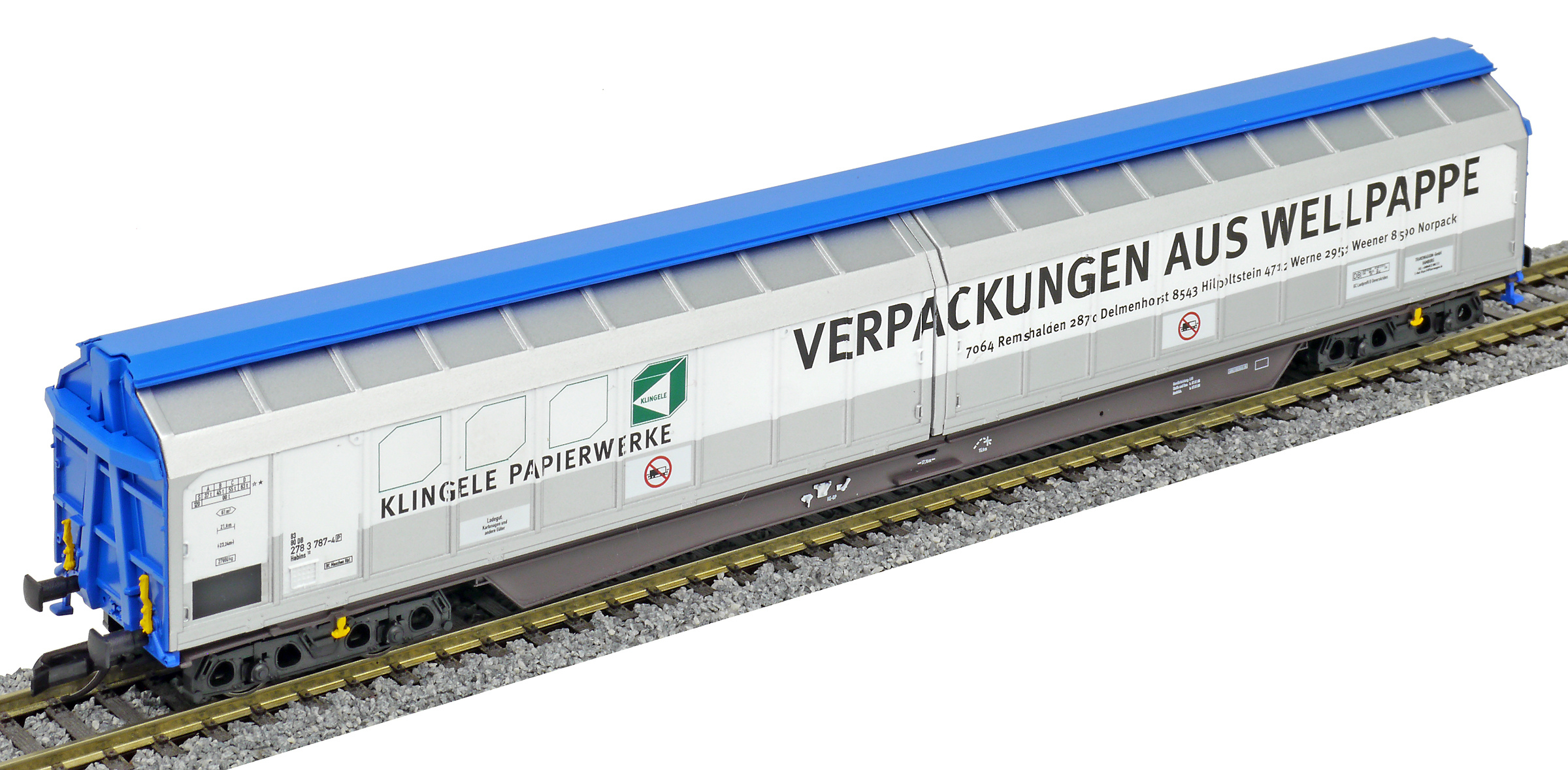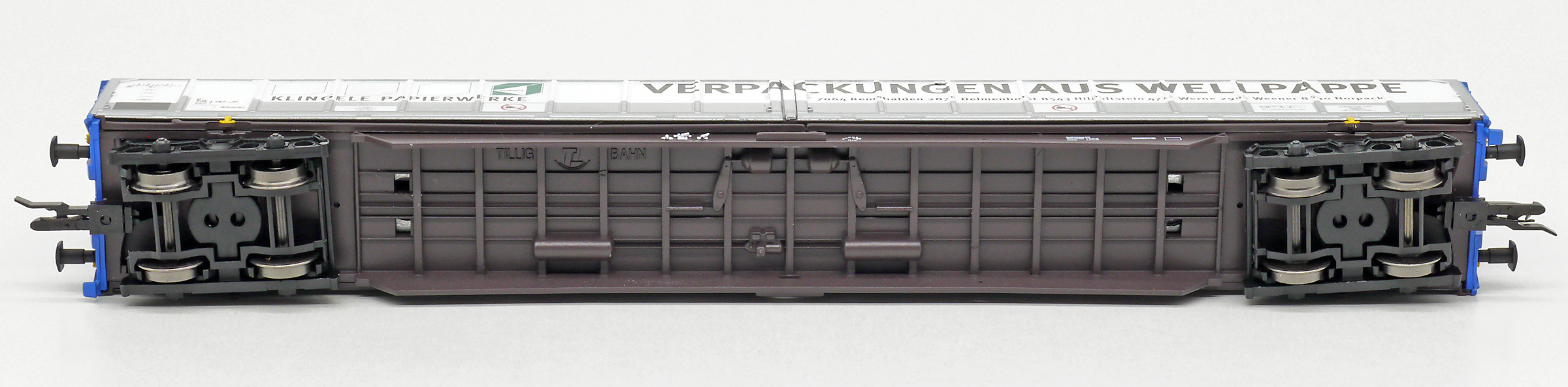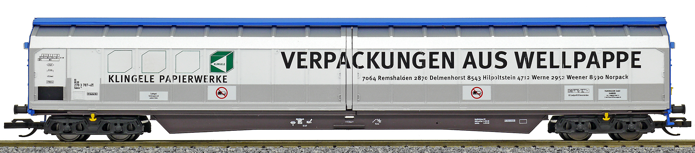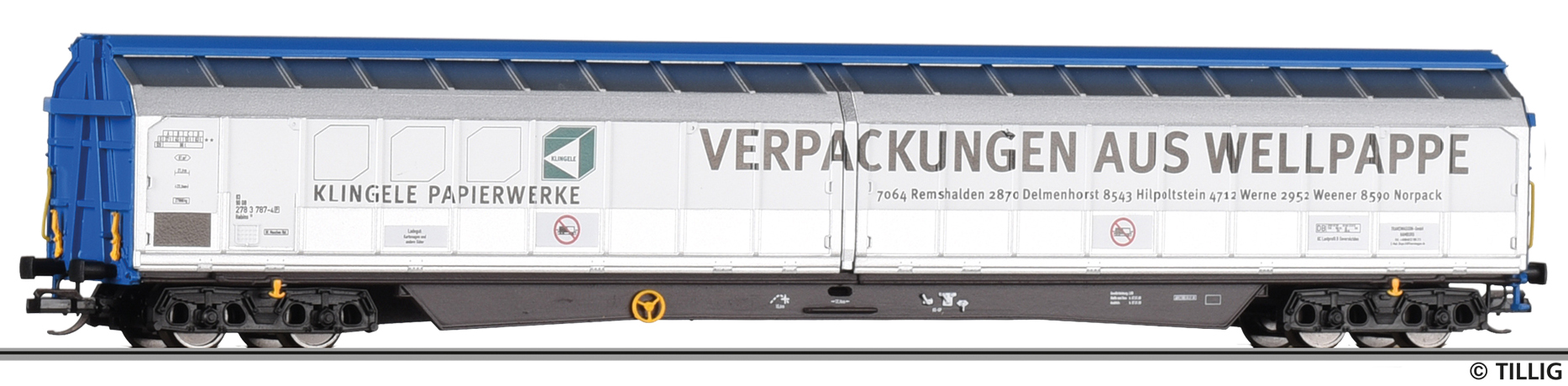 | nákladní vůz modrý s posuvnými bočnicemi „Klingele Papierwerke“ |