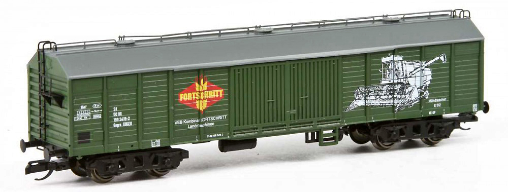 | krytý vůz zelený s šedou střechou „Fortschritt E512“ |