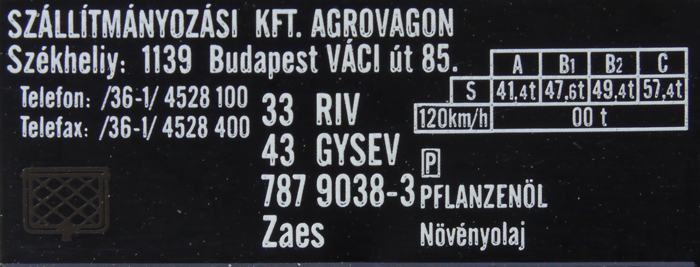 | • 33 43 787 9038-3 | → | nákladní, s podvozky, pevný rozchod, soukromý vůz, RIV, PPV |