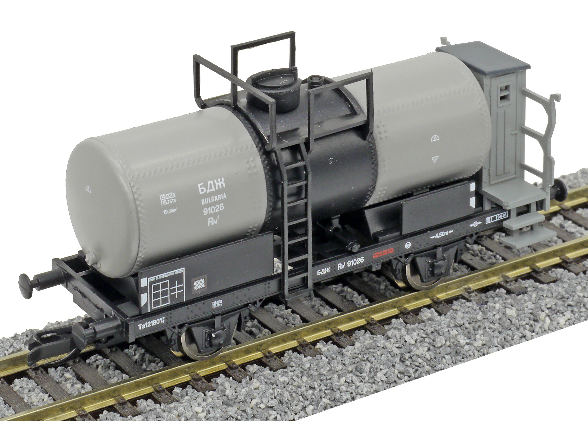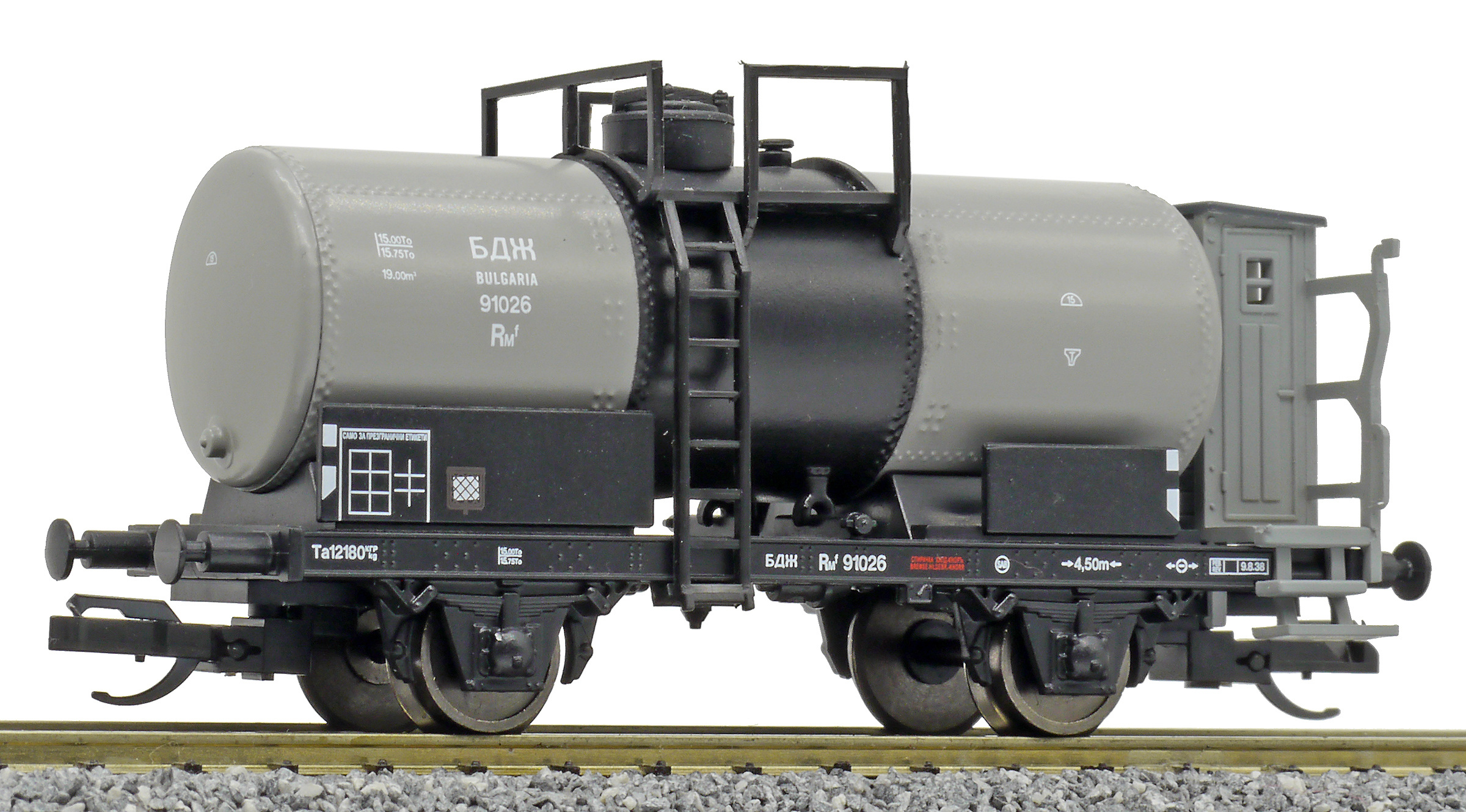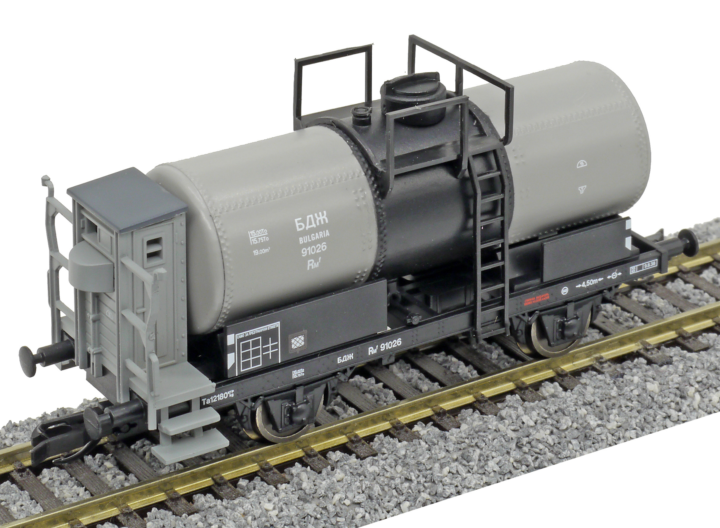 Kód   95826  [Nákladní vozy] → [Cisternové] → [2-osé R] → 95826: kotlový vůz šedý s černým rámem „BP“