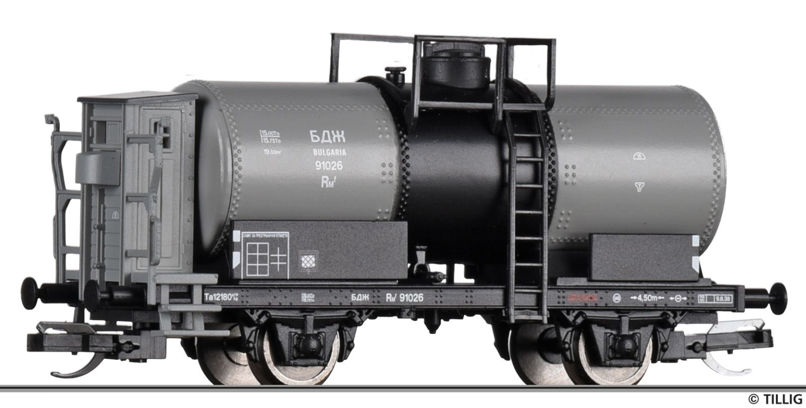 Kód   500943  [Nákladní vozy] → [Cisternové] → [2-osé R] → 500943: stříbrná s reklamou ″Tillig TT Bahn″