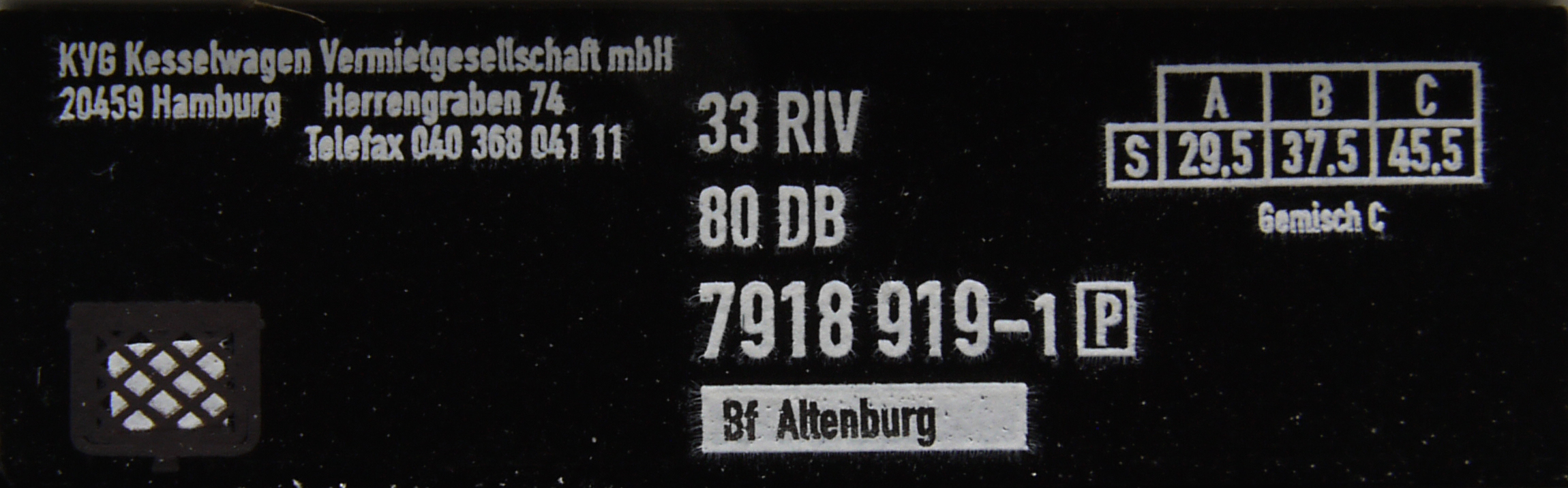 | • 33 80 7918 919-1 | → | Z - kotlový (cisternový) vůz |