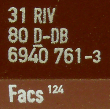 | • 31 80 6940 761-3 | → | nákladní, s podvozky, pevný rozchod, ve vlastnictví železniční správy, RIV, PPV |