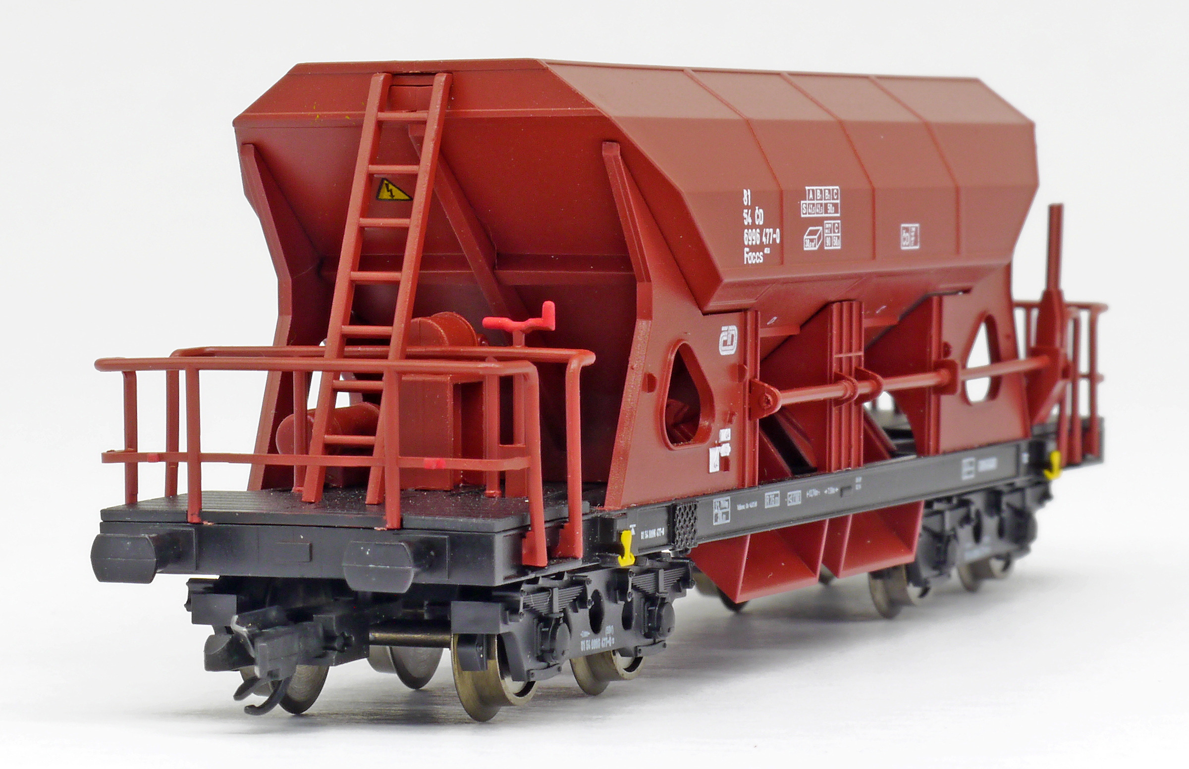 Kód   Z0801   ze SETu   [Nákladní vozy] → [Samovýsypné] → [4-osé Faccs (Sas)] → Z0801: nákladní samovýsypný vůz červenohnědý s černými podvozky