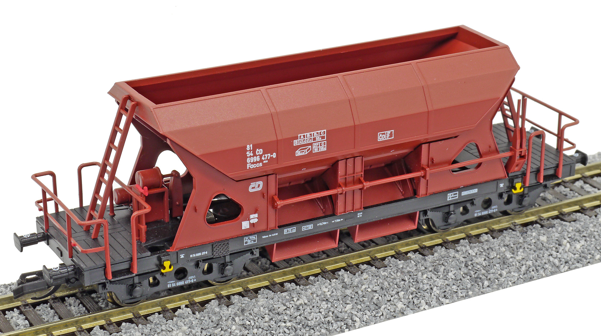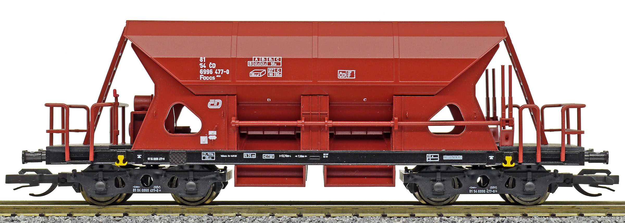 Kód   M2205  [Nákladní vozy] → [Samovýsypné] → [4-osé Faccs (Sas)] → M2205: nákladní samovýsypný vůz červenohnědý s černým rámem