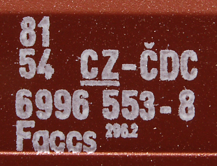 • 81 54 6996 553-8nákladní, s podvozky, ve vlastnictví železniční správy, pro mezinárodní dopravu dle zvláštních umluv