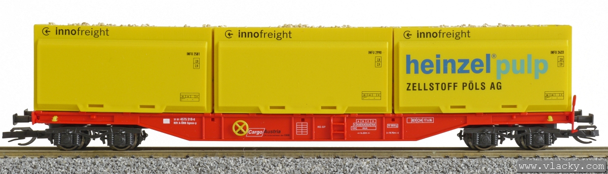 | • 31 81 4575 318-8 | → | nákladní, s podvozky, pevný rozchod, ve vlastnictví železniční správy, RIV, PPV |