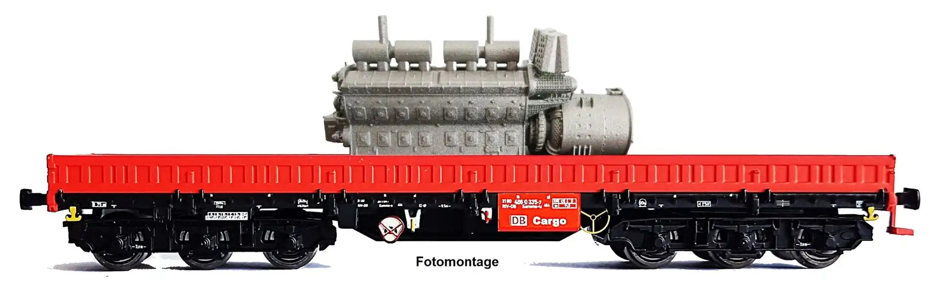 | nízkostěnný nákladní vůz červený s nákladem dieselového motoru typu EMD 567B |