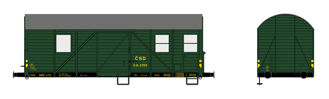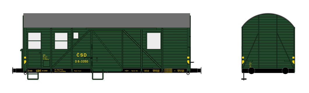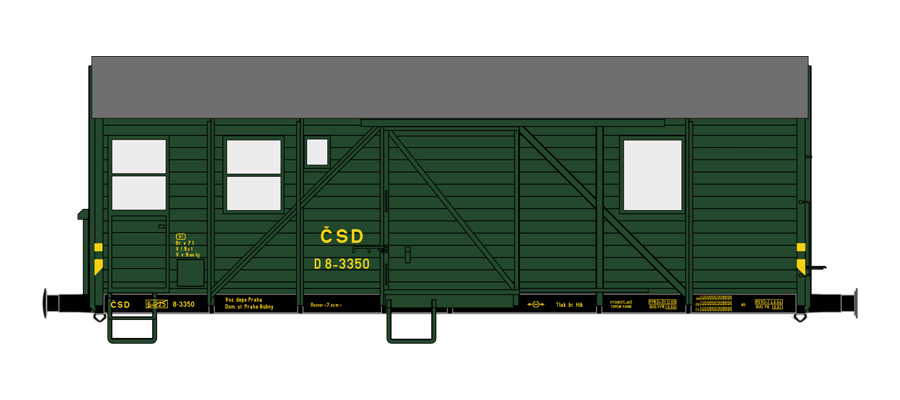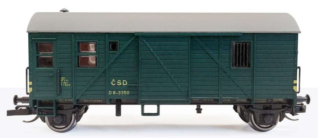 | služební vůz zelený s šedou střechou pro nákladní vlaky |