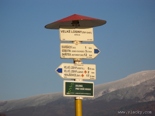 V Petrově nad Desnou na mne již čekal otec a pokračovali jsme dále autem. Souprava měla další krátkou zastávku ve Velkých Losinách. Tam musela počkat, až vlak Os 13766 dojede do Koutů nad Desnou a uvolní trať. Počkali jsme u Velkých Losin zastávky na průjezd soupravy. Ta při své testovací jízdě zastavovala na zastávkách, aby tak simulovala skutečný provoz. Sledovali jsme odjezd z Velkých Losin zastávky a dále jsme pokračovali do Koutů nad Desnou. Skutečně za chvíli vlak přijel, trochu se však pocukával před přejezdem. V čele soupravy byl motorový vůz 814 501-3 a řídící vůz 914 501-2 byl vzadu. Přece jen nevýhoda jedné hnací soupravy na trati s většími sklonovými poměry byla znát.