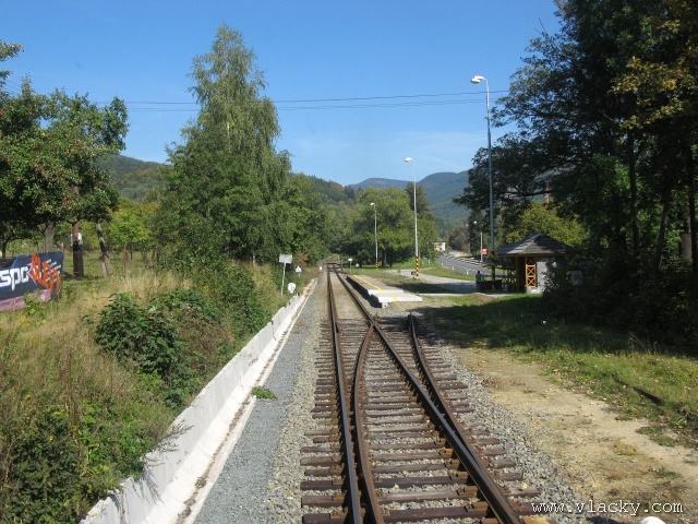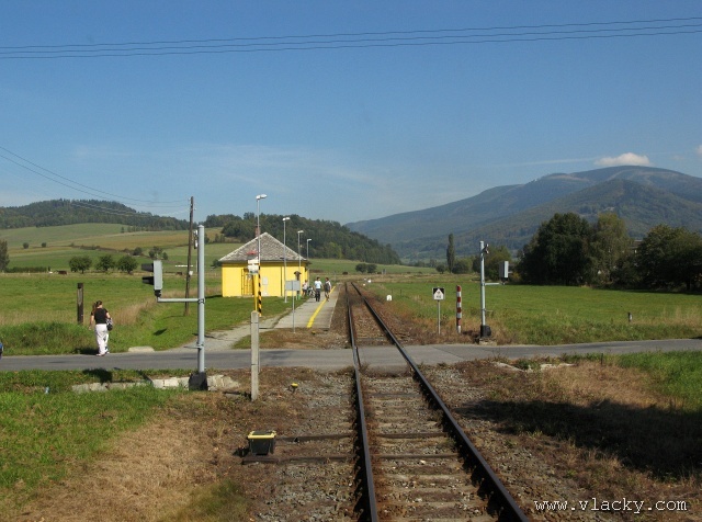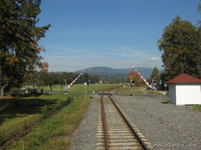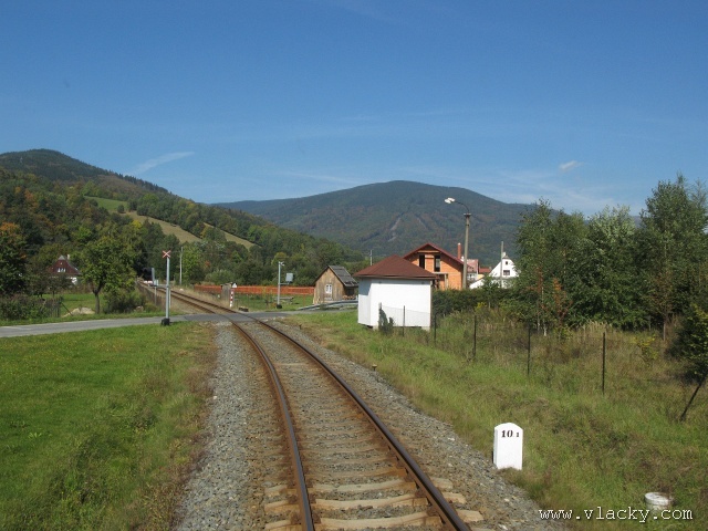 Železnice Desná - cesta vlakem do hor 23.9.2007V neděli 23.9.2007 definitivně skončilo astronomické léto a v 11:51 se ujal vlády podzim. Již delší dobu jsem plánoval uskutečnění projížďky po Železnici Desná a pořízení záznamu z jízdy po trati ze stanoviště strojvedoucího. Inspiraci jsem našel na internetovém TV kanálu od sousedů Bahn TV Online. Počasí ten víkend bylo mimořádně dobré, obloha čistě modrá, poslední záchvěvy léta. Povolení od vedoucího železničního provozu Železnice Desná pro vstup na stanoviště strojvedoucího jsem měl v ruce, takže jedeme. Cestu jsem začal v Petrově nad Desnou. Po nezbytné domluvě jsem nastoupil do vlaku 13765, který byl teprve na cestě do Šumperka a který ze Šumperka pojede zpátky směrem do Koutů nad Desnou. Veškerou potřebnou techniku jsem si rozložil na zadním stanovišti a připravil se na akci. Po příjezdu vlaku do Šumperka zbývá ještě 9 minut, které jsem využil na přeleštění okna a otestování kamery. Je 11:38, kamera běží a vlak 13764 sestavený ze dvou motorových vozů 810 odjíždí ze Šumperka. Odjíždíme přes severní zhlaví, kde ze stanice vedou dvě trati, naše do Koutů nad Desnou a sousední do Olomouce přes Uničov a Šternberk. Přejíždíme dva mosty, naše trať zatáčí více doleva směrem do Vikýřovic, druhá trať se stáčí doprava a přechází ve stoupání směrem do Nového Malína. Přijíždíme na první zastávku Vikýřovice u penzionu. Trať dále pokračuje podél zahrad nenáročným stoupáním do zastávky Vikýřovice. Za ní se trať opět napřimuje až k Petrovu nad Desnou. My však ještě zastavujeme na jedné z nejmladších zastávek, Vikýřovice-Lesní. Za touto zastávkou vyjíždíme do rovinatých polí a luk, kde je v dálce vidět stanice Petrov nad Desnou. Vjíždíme na hlavní kolej a po zastavení vlaku se oba motorové vozy rozpojí. Náš bude pokračovat dále do Koutů nad Desnou, zadní motorový vůz následně odjede do Sobotína jako vlak 23858. Protože původní trať vedla ze Šumperka do Sobotína, pokračuje hlavní staniční kolej tímto směrem. Ze stanoviště vidíme před sebou přejezd se silnicí č. 11 směrem na Ostravu, který je zrovna modernizován a budou na něm automatické závory. Momentálně je však mimo provoz a musíme podle návěsti snížit rychlost a dávat zvuková znamení. Dostáváme Všeobecný rozkaz "V" a odjíždíme ze stanice. Trať se stáčí více vlevo do údolí říčky Desné. Přejíždíme přejezd s místní silnicí spojující Petrov nad Desnou s Rapotínem, přejíždíme ocelový most, který byl kompletně obnoven po povodni 1997, a je tu Rapotín zastávka. Tady musíme podle Všeobecného rozkazu "V" zastavit, protože s modernizací předchozího přejezdu jsou spojena provozní omezení. Před sebou vidíme, že závory teprve teď začínají uzavírat přejezd se silnicí č. 44. Teprve potom můžeme pokračovat do nedaleké zastávky Rapotín. Ještě nedávno byla tato zastávka nákladištěm a vedle bývalé staniční budovy stálo skladiště. Při odjezdu ze zastávky jsou ještě patrné stopy po úpravách kolejového svršku. Do místních skláren vedla vlečková kolej, která byla teprve nedávno zrušena a při modernizaci přejezdu tak mohly být závory posunuty blíže. Jedeme směrem k Velkým Losinám. Úplně vlevo nám stromy zakrývají pohled k zámku Velké Losiny. Několika oblouky se vyhýbáme zahradám a vjíždíme do výpravny Velké Losiny. Návěstidlo u samovratného přestavníku první výhybky bliká bílým světlem, vše je v pořádku. V této výpravně se křižují některé protijedoucí vlaky. Bezobslužnost výpravny je zajištěna použitém samovratných přestavníků. Vlak jedoucí od Šumperka nebo Koutů nad Desnou vjíždí na svoji kolej a při odjezdu si sám přehodí výhybku se samovratným přestavníkem na odjezdovém zhlaví. Po telefonickém ohlášení jedeme dále. Při odjezdu z výpravny si přehazujeme zmiňovaný samovratný přestavník a jsme na širé trati, která přechází do prudšího stoupání. Velké Losiny zastávka je u místní silnice mezi Velkými Losinami a Maršíkovem. Údolí se začíná pomalu zužovat a vlevo se k trati přimyká silnice č. 44 směřující do Jeseníku. Nikdo z cestujících nechce vystupovat a proto zastávku Loučná nad Desnou - Filipová projíždíme. Vpravo mezi porostem se občas objeví zbytky z kdysi velkého nákladového nádraží, které bylo používáno při stavbě přečerpávací elektrárny Dlouhé Stráně. Objevují se první stavení Loučné nad Desnou. Přejíždíme opět říčku Desnou a trať se vine blíže k nástupišti zastávky Loučná nad Desnou. Při povodni 1997 bylo kolejiště výpravny značně poškozeno a druhá kolej tak nebyla obnovována. O původním stavu výpravny dnes vypovídá ještě stojící budova skladiště a v pozadí zbytky rampy. Pokračujeme dále, trať stále stoupá, oblouky jsou ostřejší a traťová rychlost je 40 km/h. Trať přechází ne levou stranu údolí a začíná se skrývat v bujné vegetaci. Zastávka Loučná nad Desnou - Rejhotice vypadá na první pohled nedokončená. Bylo vybudováno vyvýšené nástupiště, ovšem nepotřebná manipulační kolej nemohla být snesena. Ústí do ní sice nepoužívaná vlečková kolej z firmy STRONG WOOD, s.r.o., která však nebyla oficiálně zrušena. Poslední úsek trati nám nenaskýtá příliš rozhledu po údolí, které je zde dosti úzké a trať vede spíše ve svahu a v zářezu. Teprve před příjezdem do stanice Kouty nad Desnou se nám naskytne trochu větší rozhled. Na vjezdu do stanice je opět výhybka se samovratným přestavníkem. Staniční budova bylo v roce 2006 kompletně zrekonstruována za finanční podpory Evropské Unie a státního rozpočtu ČR. Tady naše cesta kon
