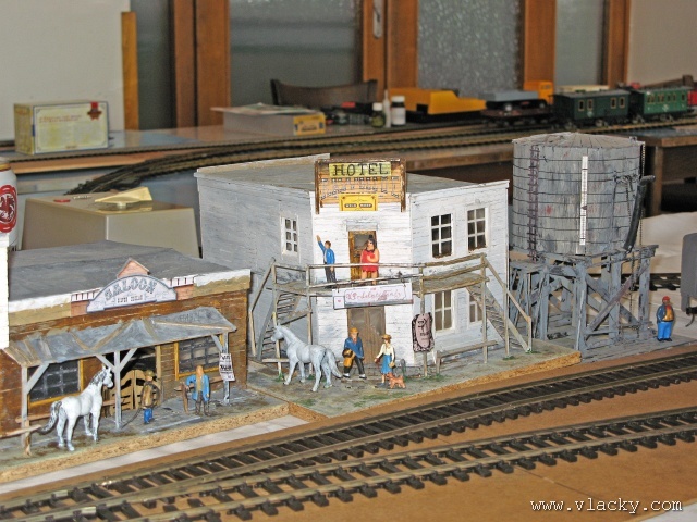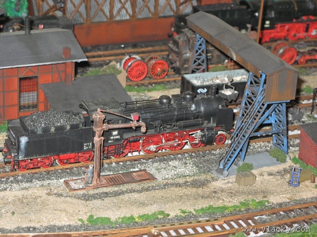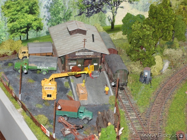 Z ostatního bych zmínil pěkně zpracovanou diorámu lokomotivního depa. Škoda, že sestava modulů depa nebyla větší, i tak se mi vystavovaný výsek velmi líbil. Aniž bych zkoumal depo podrobněji, bylo hned jasné, že ztvárňuje začátek III. epochy, zlatou éru parního provozu se vším tím nepořádkem okolo a viditelnými pozůstatky z války. Asi největší plochu zabírala ukázka modelů ve velikosti LGB. Hned na vedlejším stole na monitoru byly promítány ukázky ze segmentového kolejiště Trainmania a ve vedlejším sále byly promítány dokumentární filmy o železnici. Ve vitrinách bylo možné slédnout ukázky produkce menších i větších výrobců ve všech modelových velikostech. A před kulturním domem nakonec jezdil i skutečný parní vlak Sičovy drobné železnice, pouze poněkud zmenšený v měřítku 1:8.
