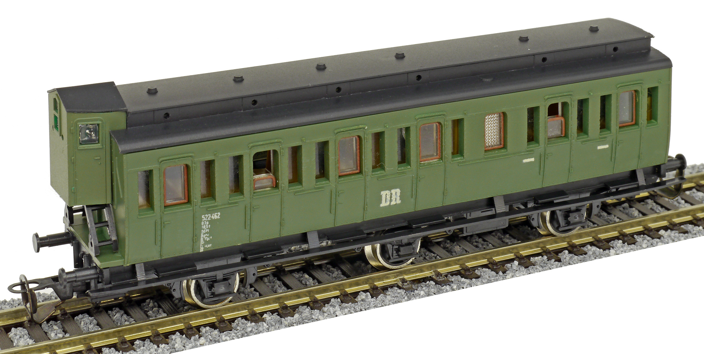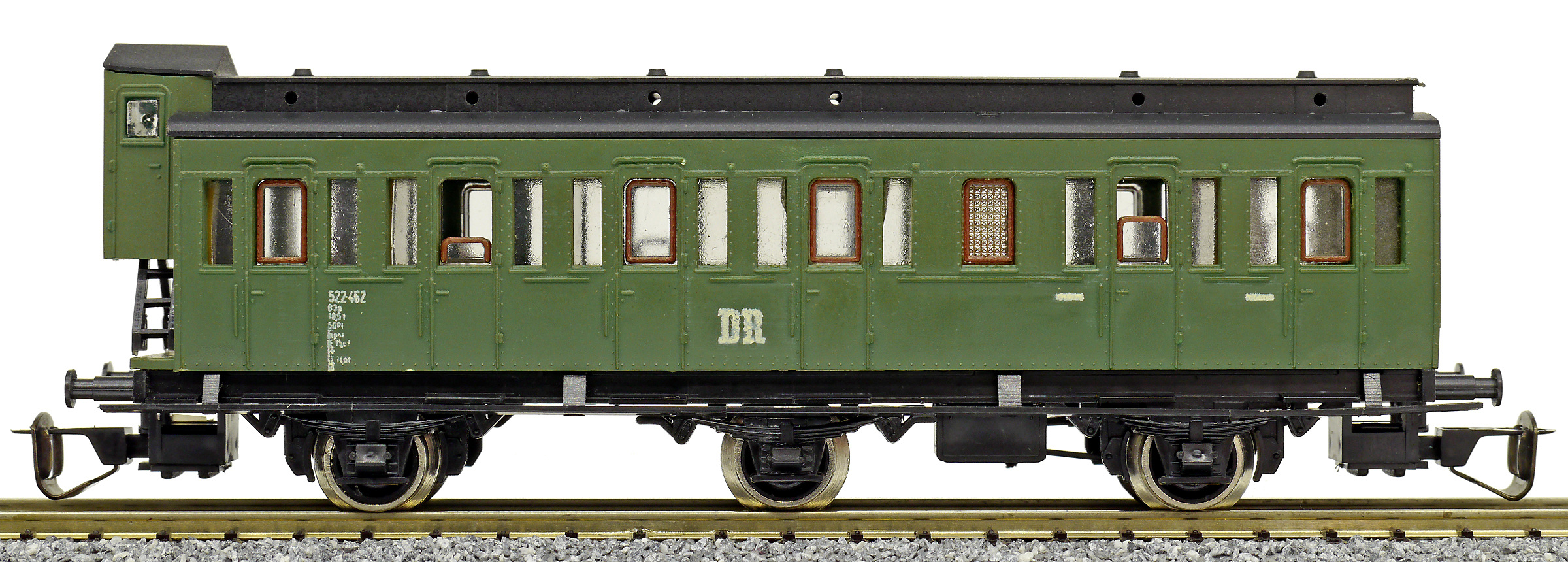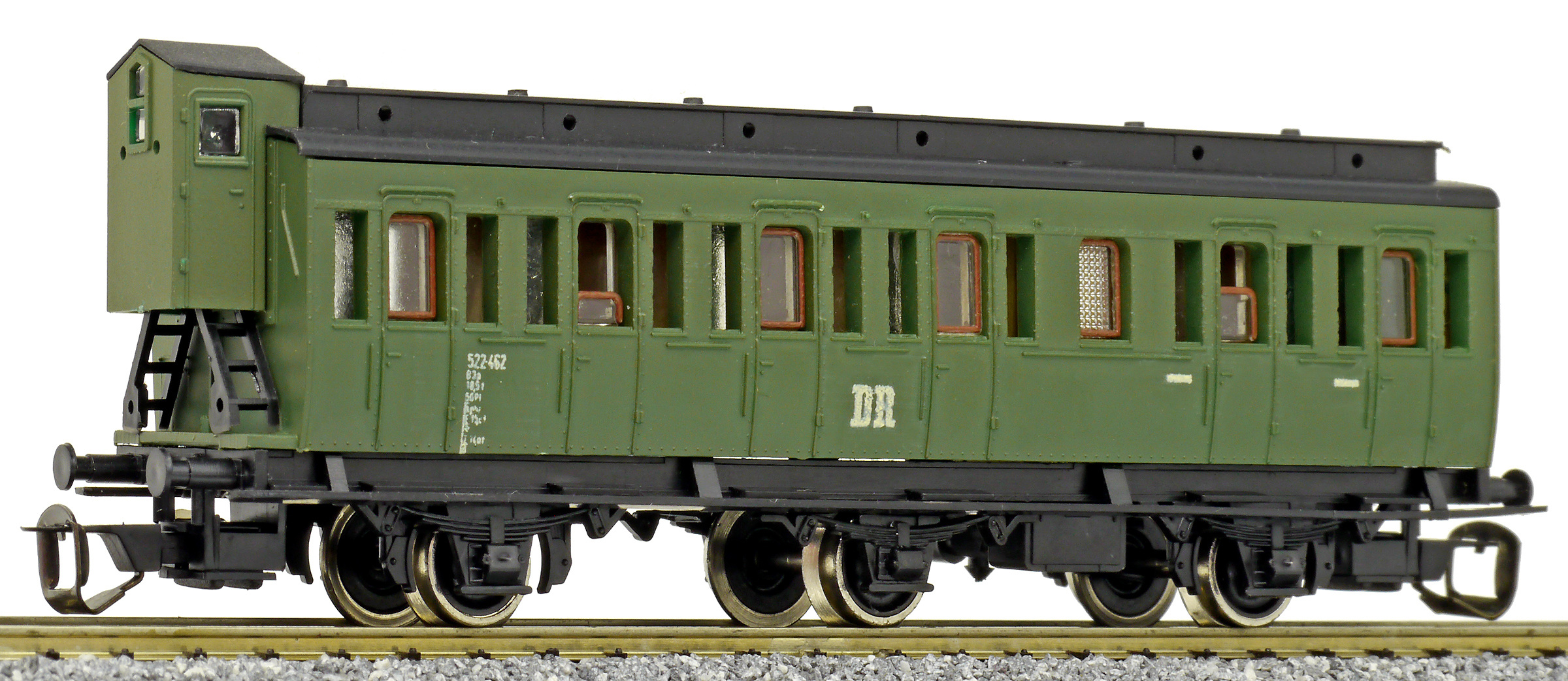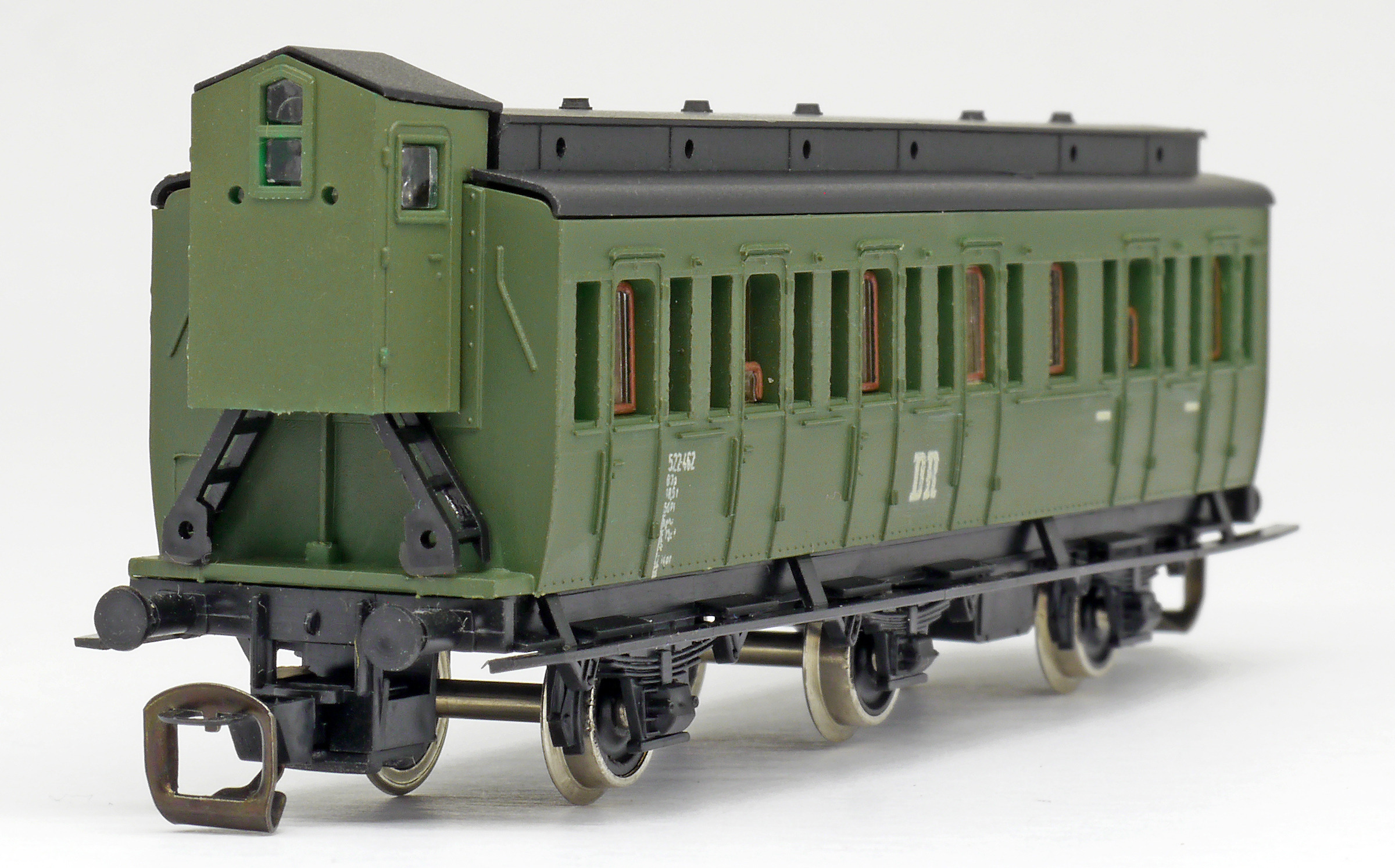 Popis   oddílový osobní vůz zelený s brzdařskou budkou (ex C3 pr11)