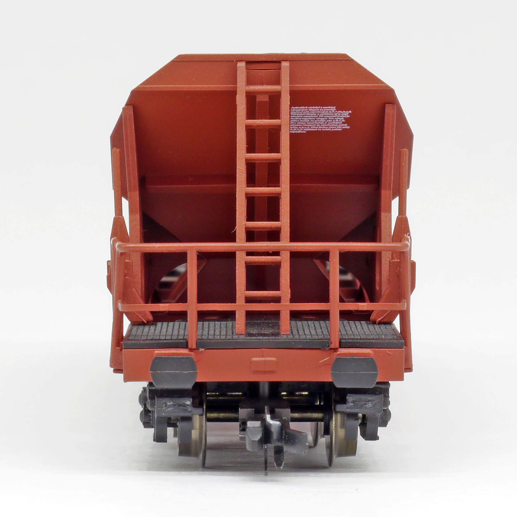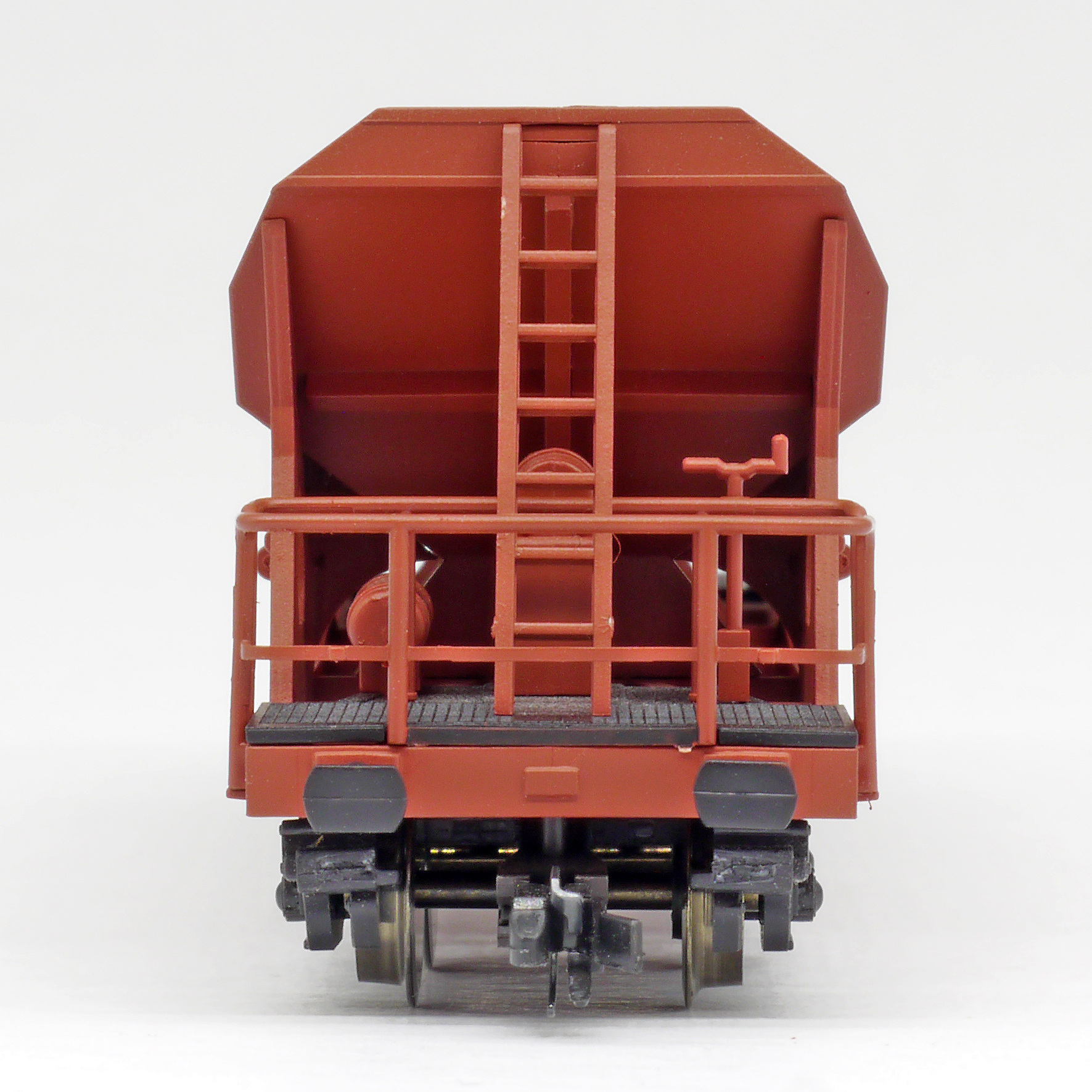 | nákladní samovýsypný vůz červenohnědý s opravnými fleky, černé plošinky |
