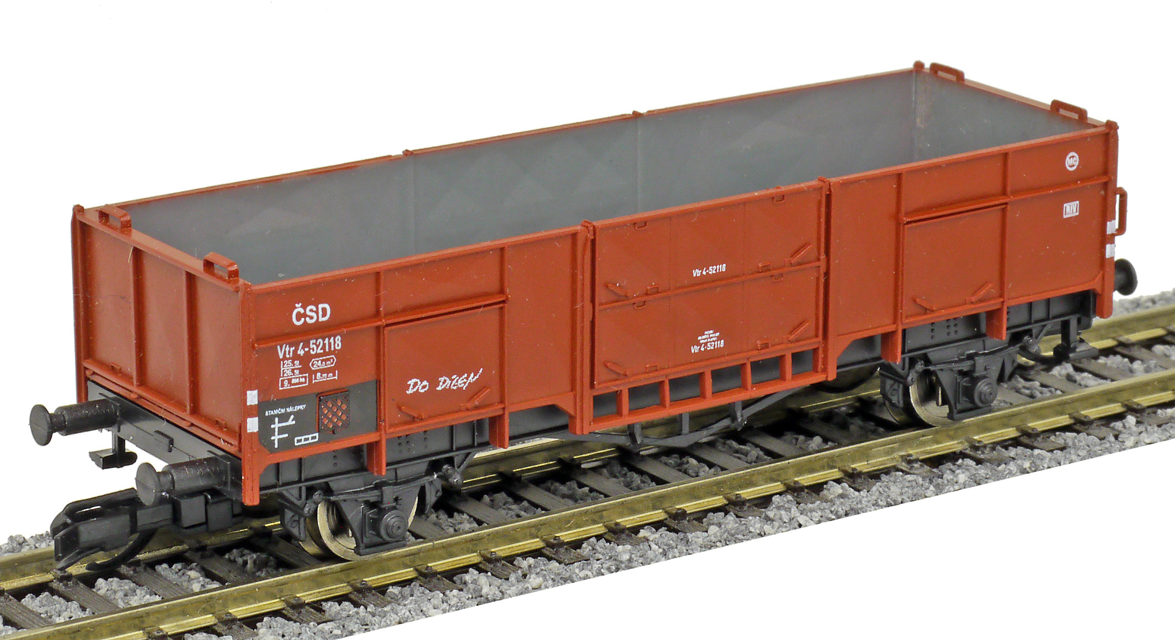 měřítko 1:120 - rozchod kolejí 12 mm nenormované uchycení spřáhla 83 mm - celková délka modelu přes nárazníky 2 - celkový počet náprav nebo rozložení náprav 20 g - hmotnost netto - pouze model