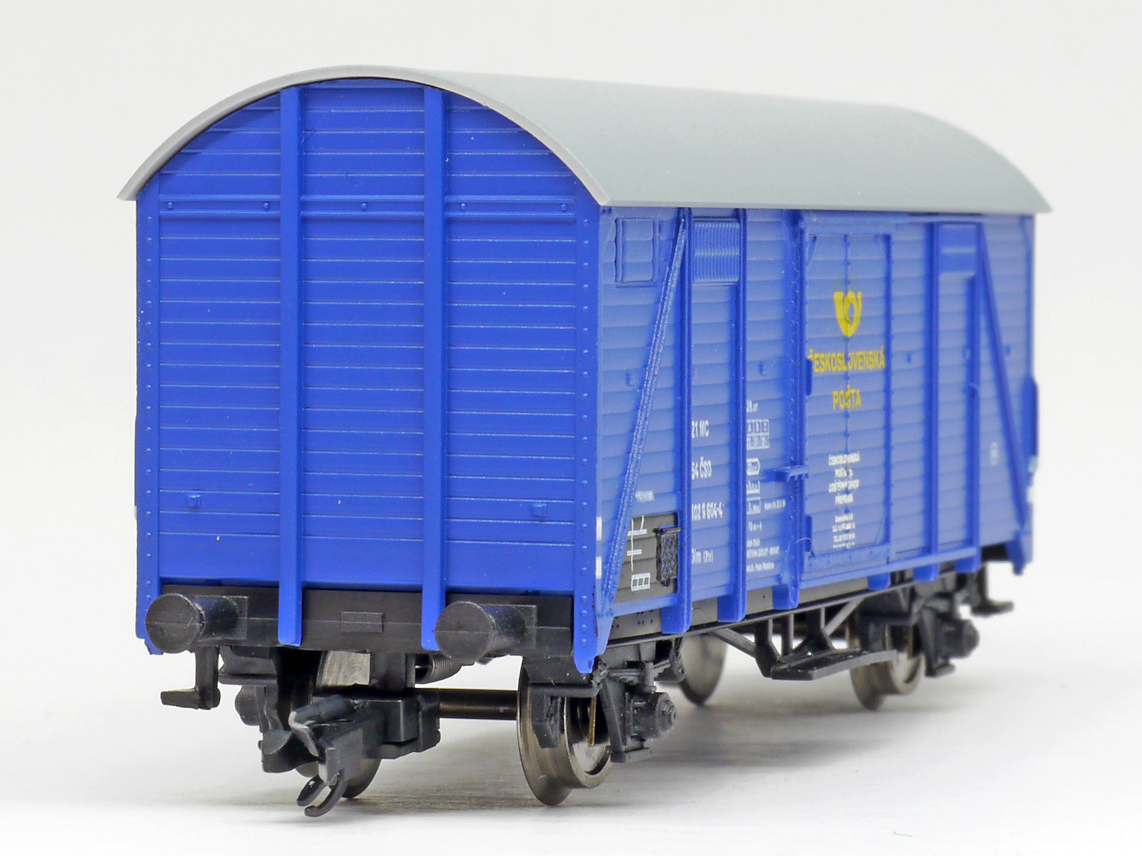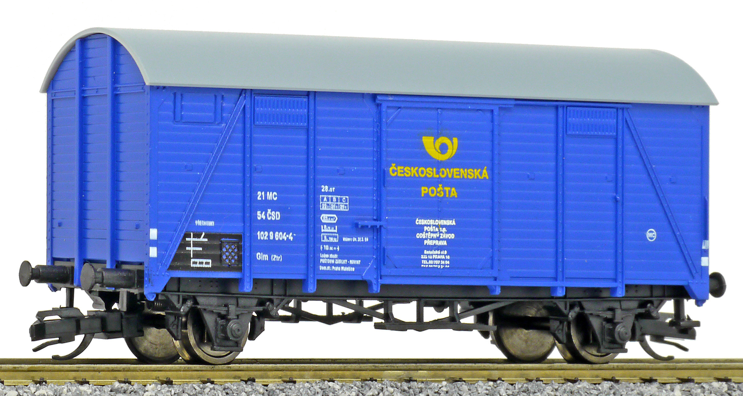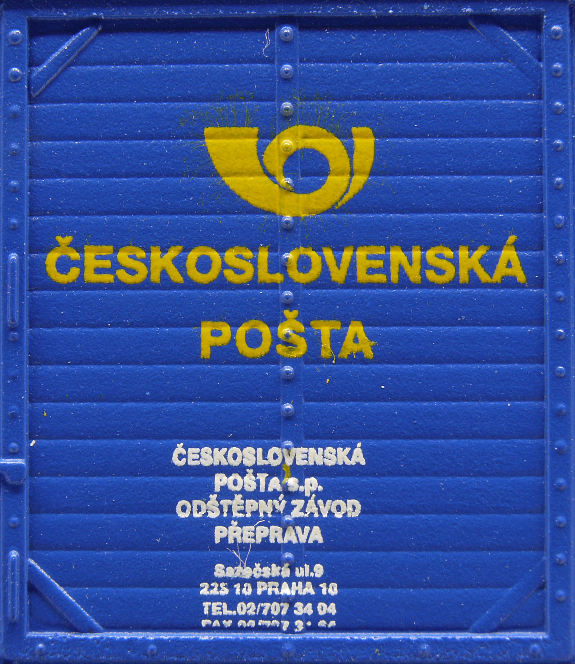 | krytý nákladní vůz modrý s šedou střechou „Československá pošta - Praha” |