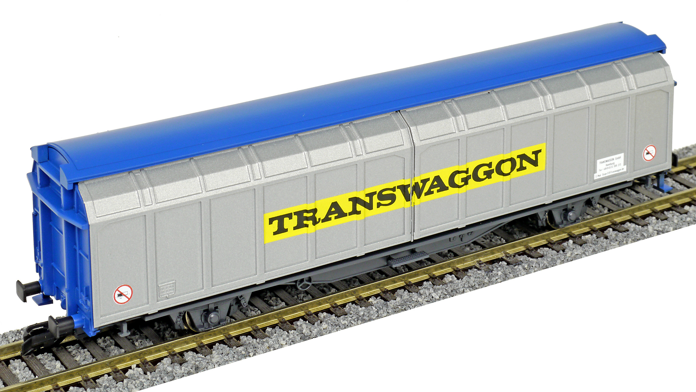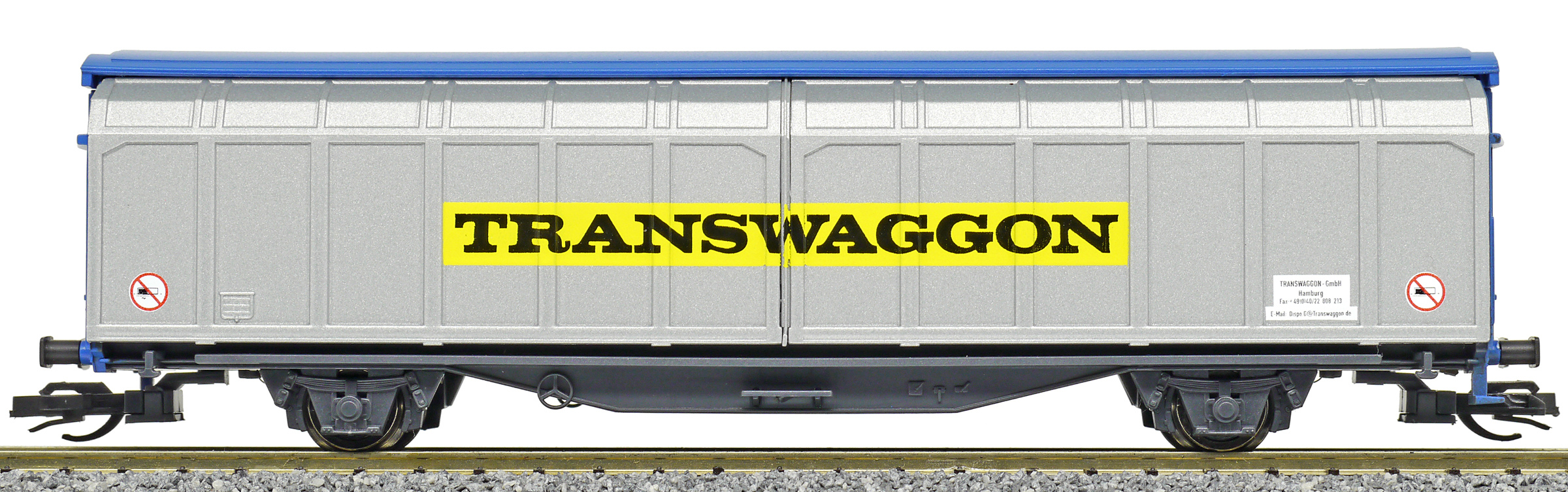 | nákladní vůz modrý se stříbrnými posuvnými bočnicemi „Transwaggon“ |