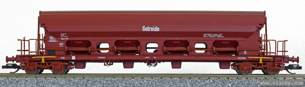 | samovýsypný vůz červenohnědý se zakrytím „Getreide“ |