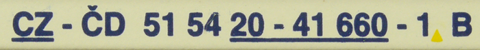 | • 51 54 20-41 660-1 | → | osobní vůz s pevným rozchodem bez klimatizace mezinárodní provoz RIC |