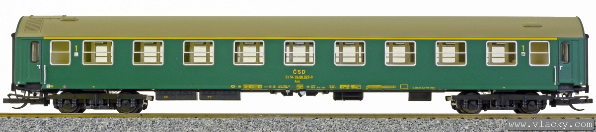 | rychlíkový vůz zelený s šedou střechou 1. tř. |
