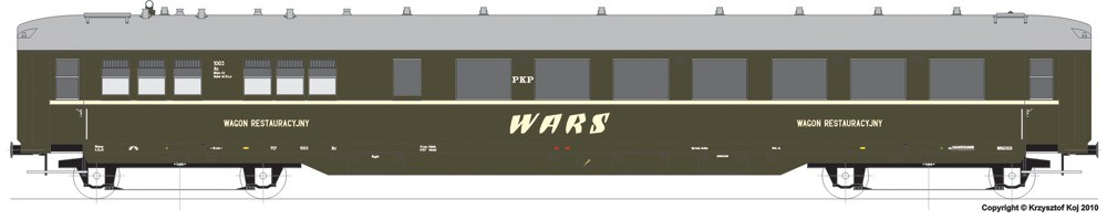 | zelený s šedou střechou jídelní vůz WARS |