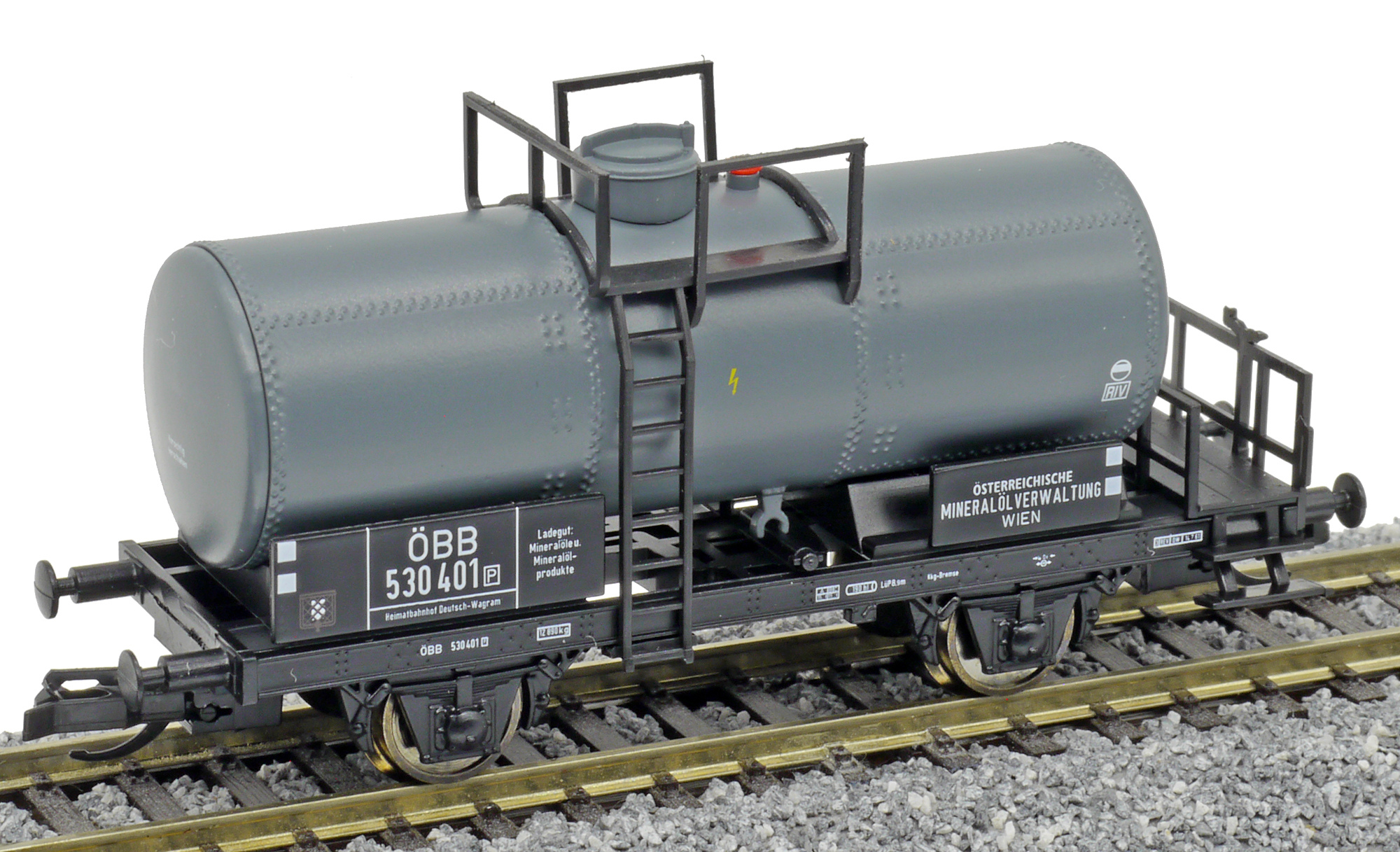 kotlový vůz šedý s brzdařskou plošinou „ÖMV“