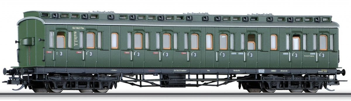 | oddílový osobní vůz zelený s tmavě šedou střechou 3. tř. |