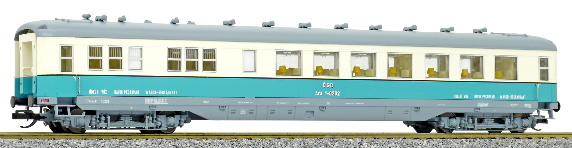| jídelní vůz modrý-slonová kost s šedou střechou |
