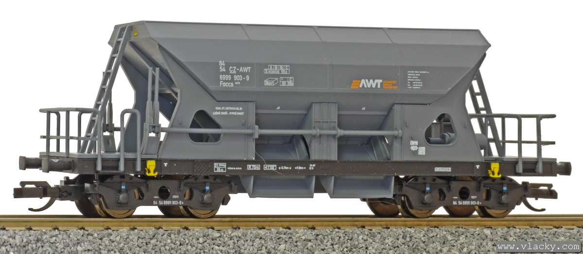 | nákladní samovýsypný vůz šedý s logem „AWT“ |