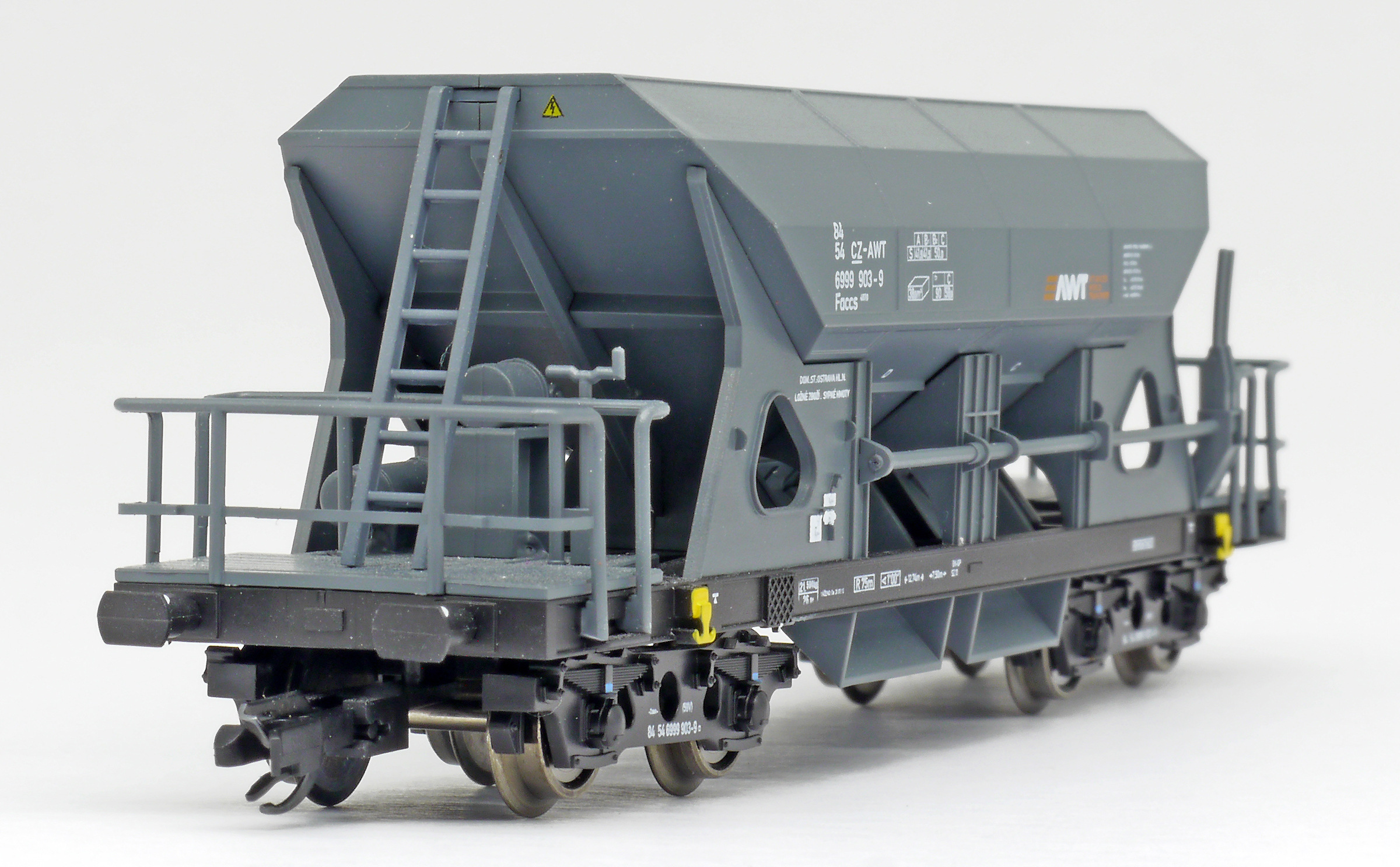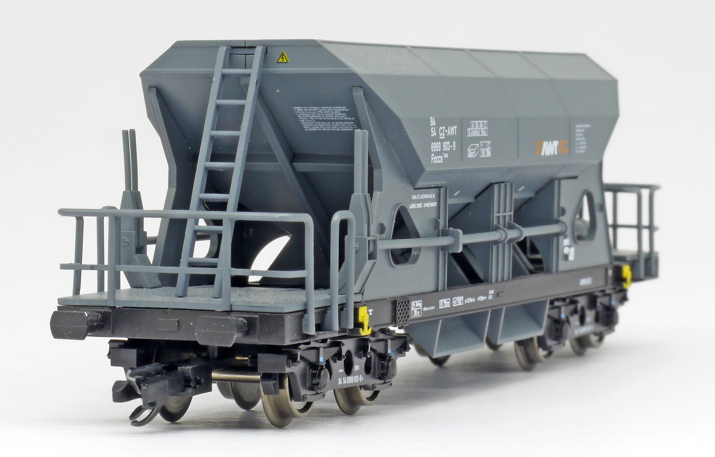 | nákladní samovýsypný vůz šedý s logem „AWT“ |