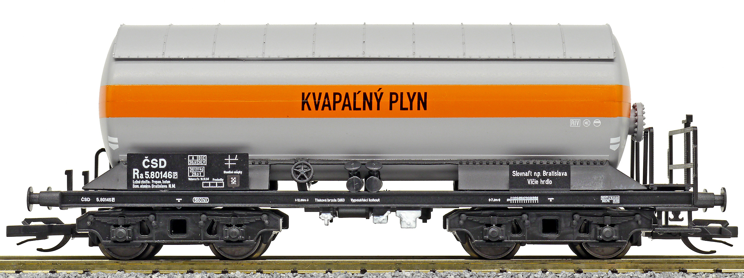 | kotlový vůz šedý s oranžovým pruhem „KVAPAĹNÝ PLYN “ |