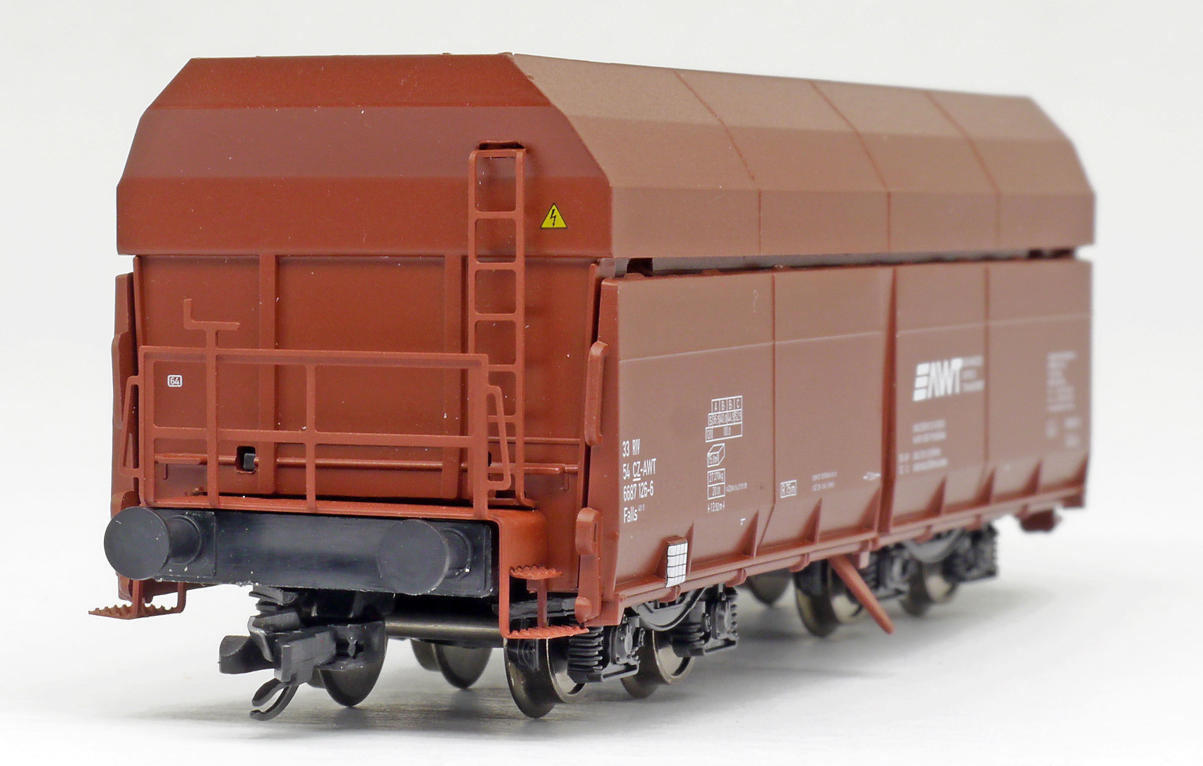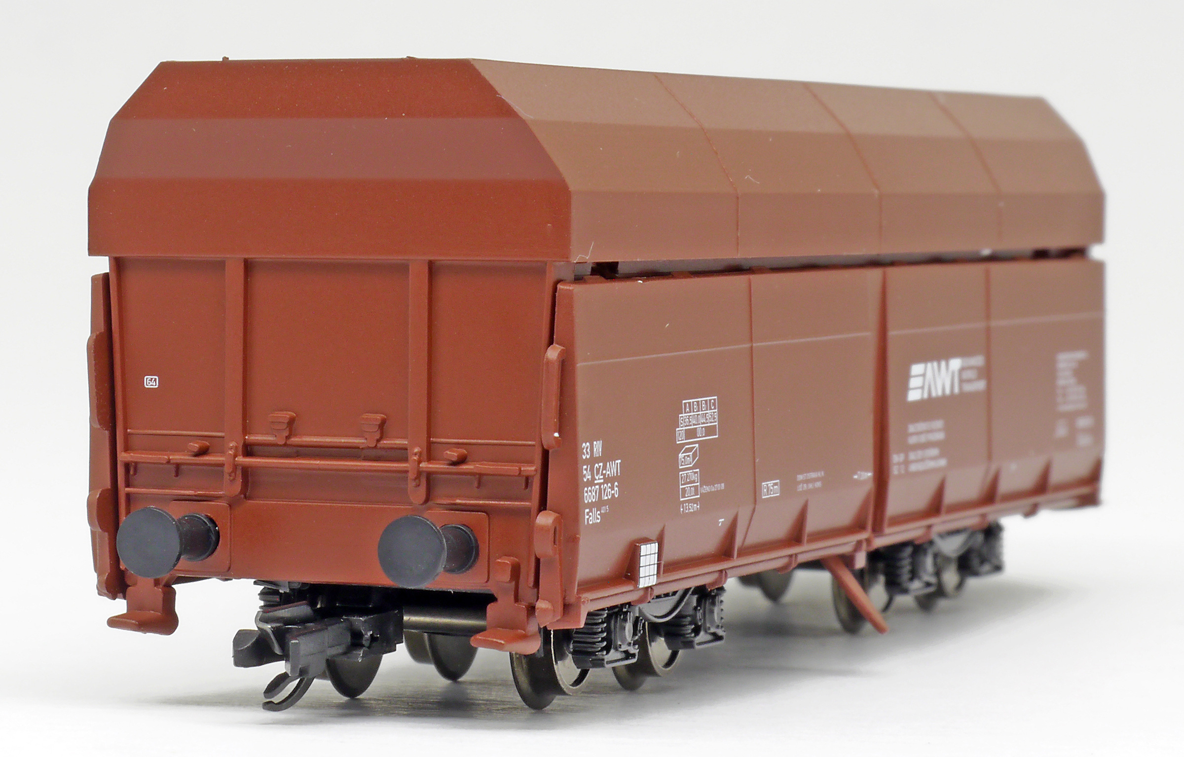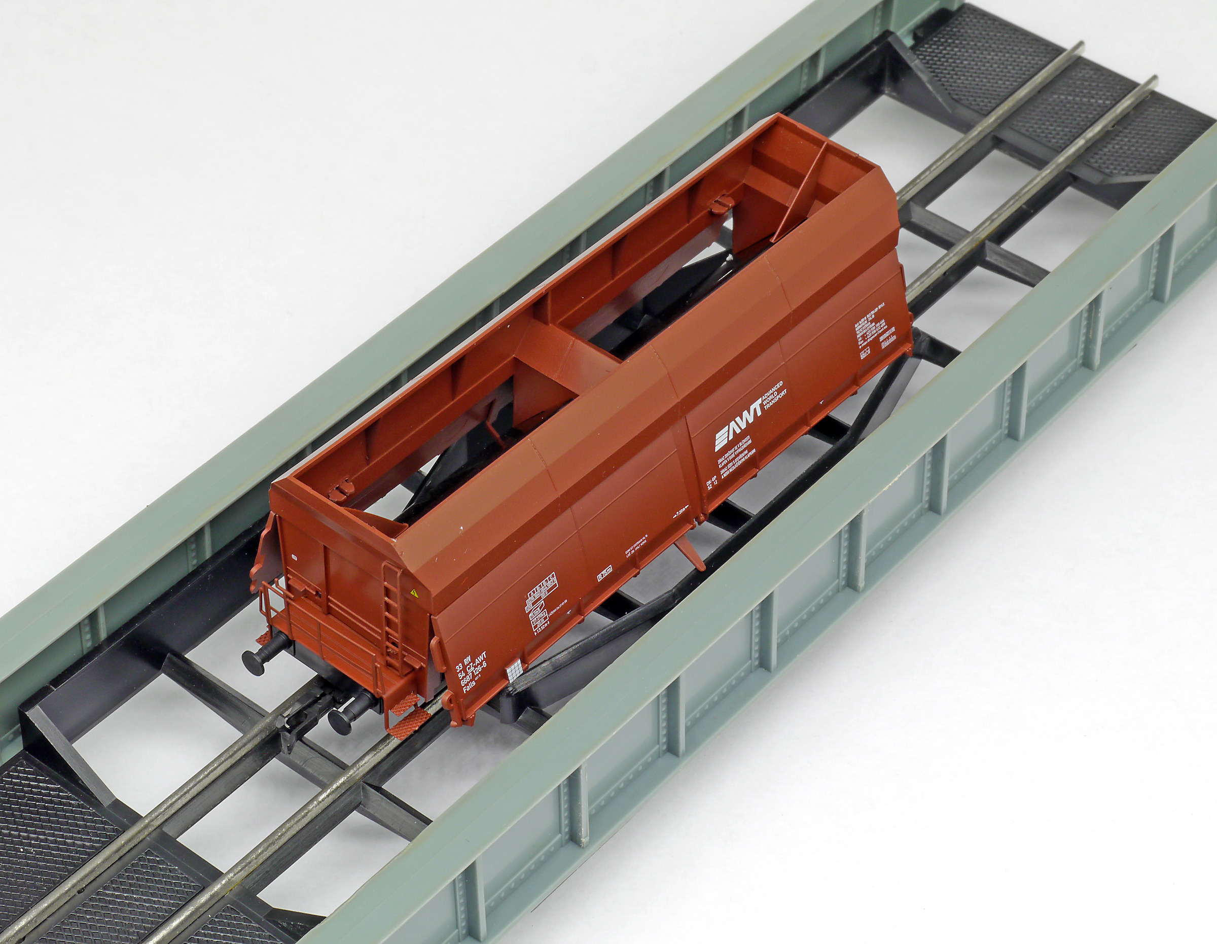 | nákladní samovýsypný vůz červenohnědý s logem „AWT“ |