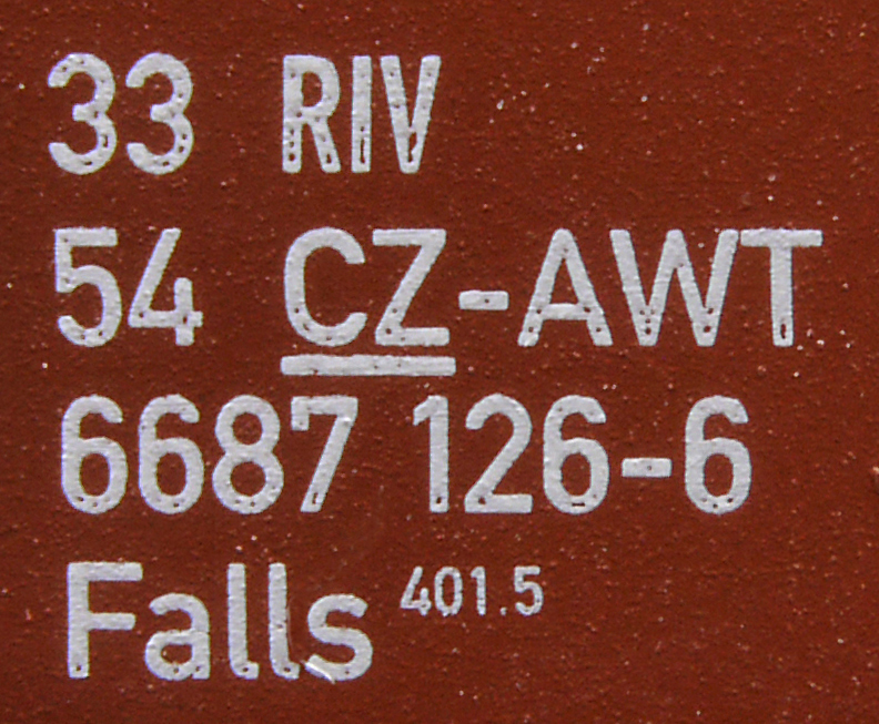 | • 33 54 6687 126-6 | → | nákladní, s podvozky, pevný rozchod, soukromý vůz, RIV, PPV |