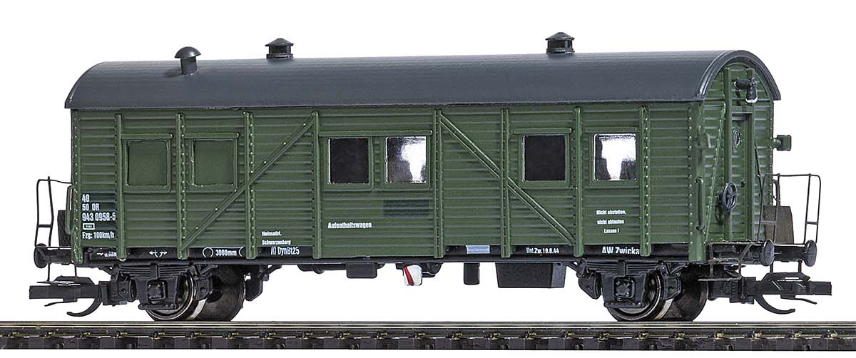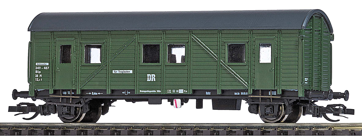 | pomocný osobní vůz, zelený s šedou střechou, nekuřáci, přeprava zavazadel |