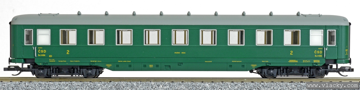 | rychlíkový vůz zelený s šedou střechou 2. tř. |