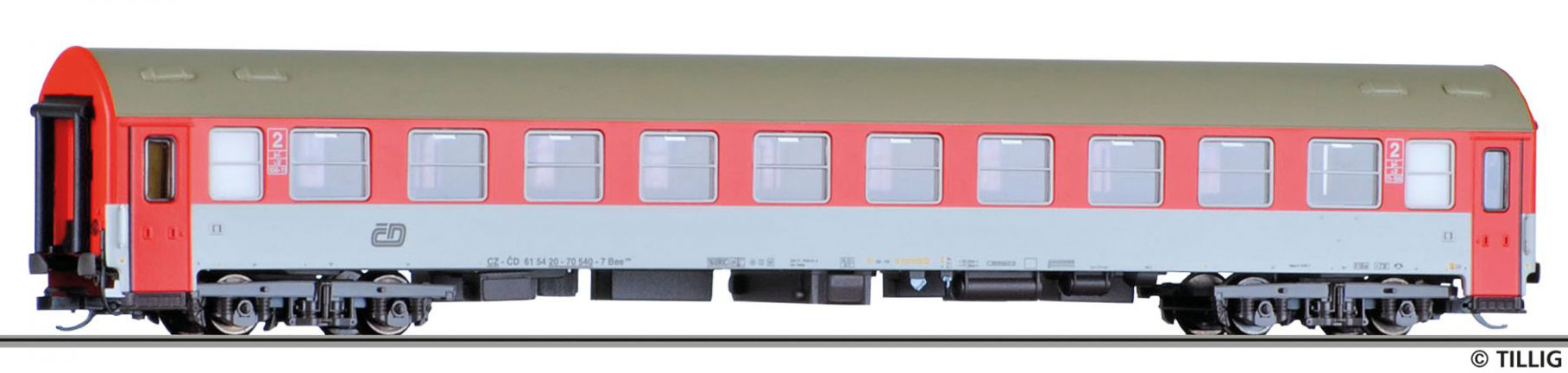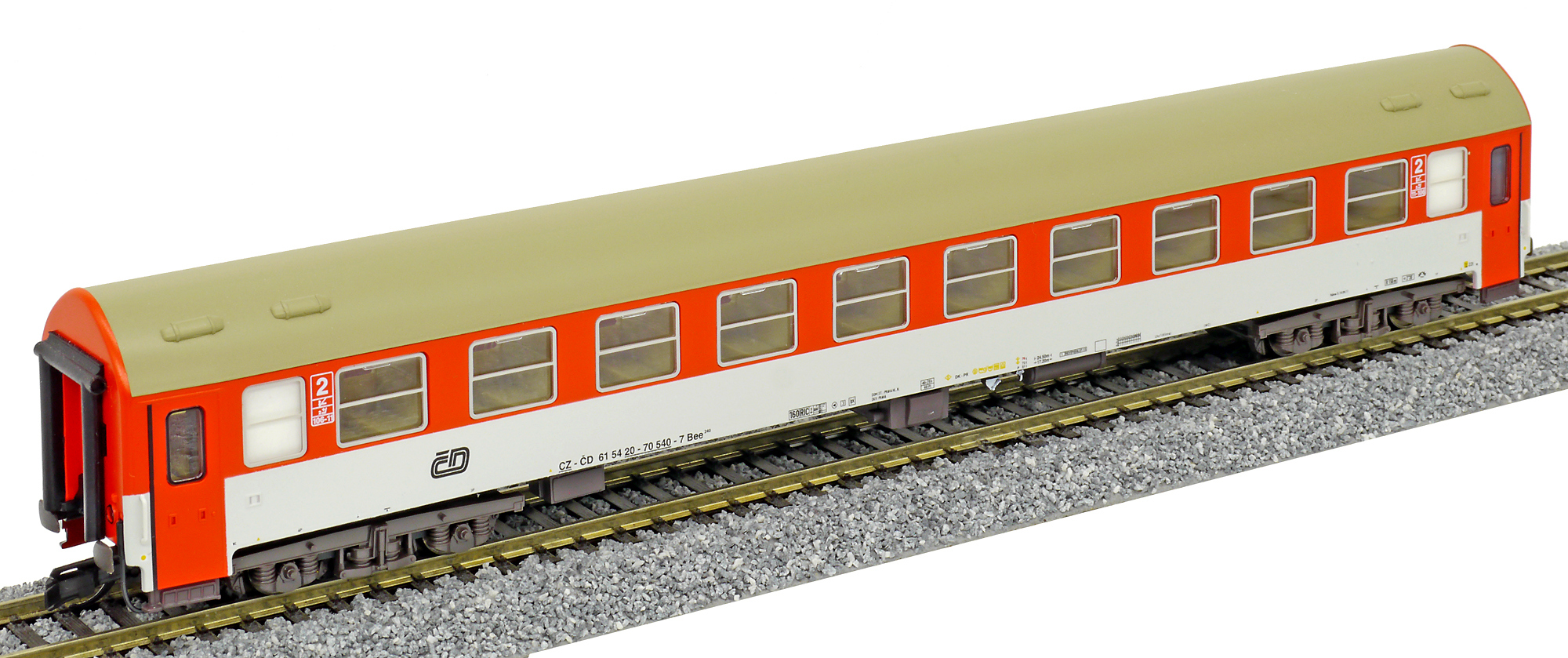 | rychlíkový vůz červený-bílý s šedou střechou 2. tř. |