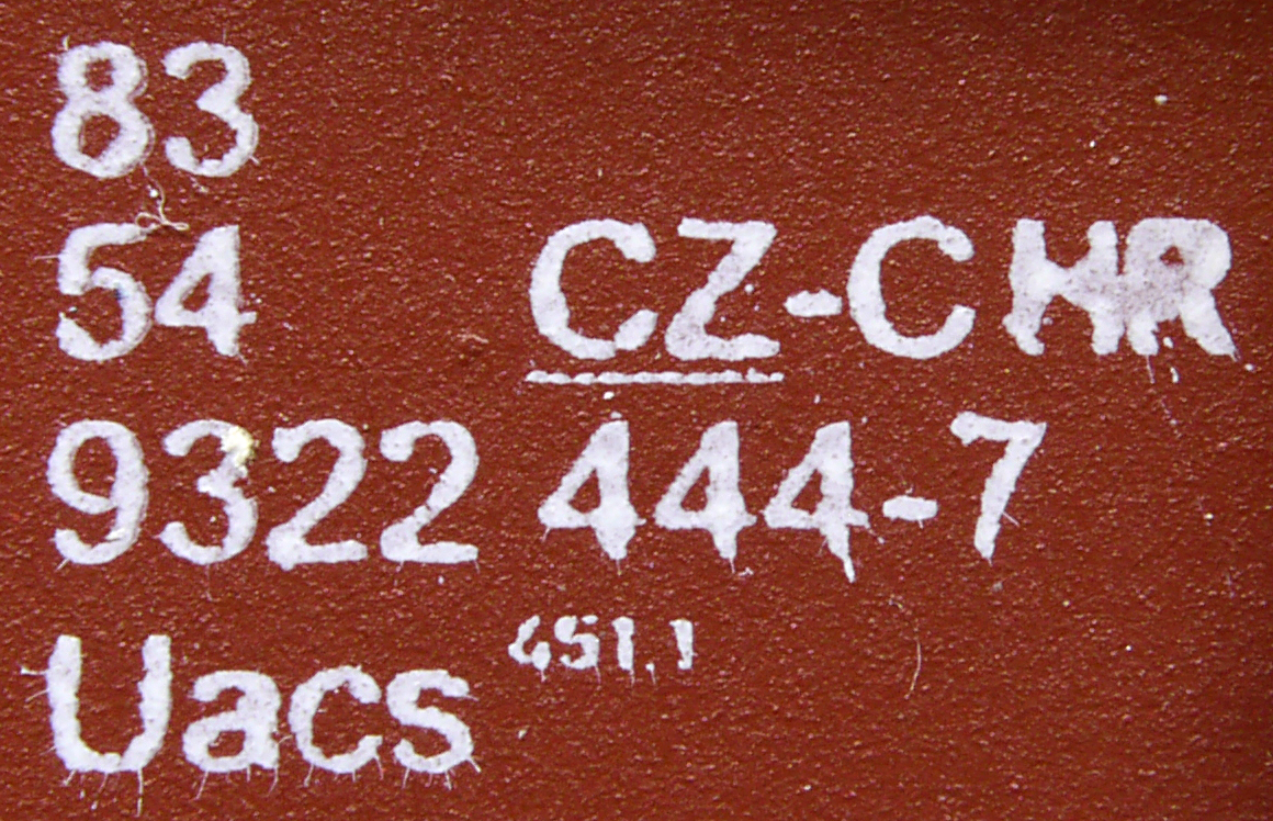 | • 83 54 9322 444-7 | → | nákladní, s podvozky, soukromý vůz, pro mezinárodní dopravu dle zvláštních úmluv |