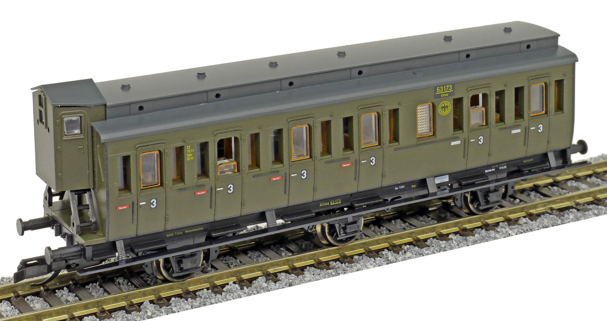 | oddílový osobní vůz tmavě zelený s černou střechou 3. tř. |